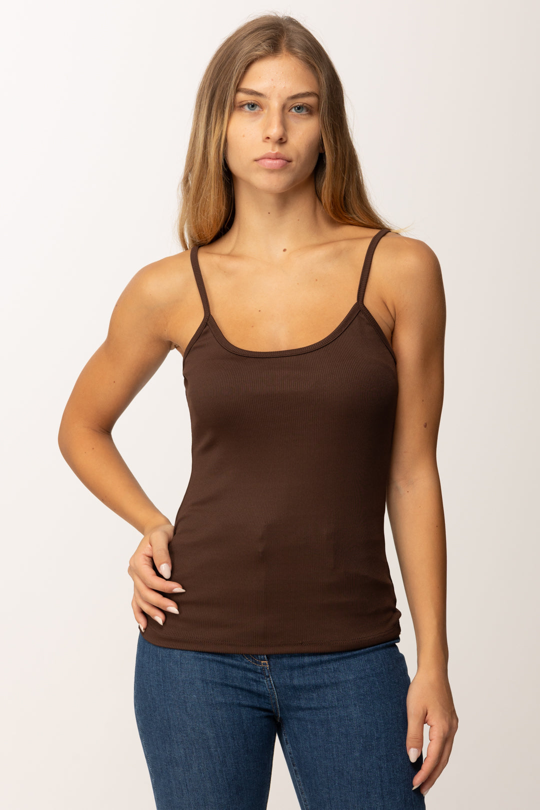 Un top tan básico que no tendrás dificultad para combinarlo en muchísimos outfits: tanto para el día como para el tiempo libre o para el gimnasio, queda bien tanto con un denim como con shorts deportivos o jogging, pero también para hacer contraste con una prenda inferior con un estampado muy fantasioso o para crear un look total más discreto y monocromático. Llévalo también debajo de camisas de jean o con estampado, para anudar en la cintura, para un layering fácil y colorido, o debajo de cardigans cómodos para las medias estaciones.
