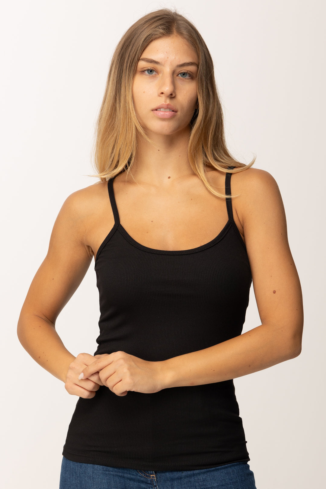 Básica y versátil camiseta Khloefemme que se convertirá en una aliada de tus outfits más ligeros y despreocupados además de tus capas de estilo. Tejido de canalé súper ajustado, tirantes finos y escote discreto delantero y trasero, un top propuesto en varios colores que te será útil en cada uno de sus matices!