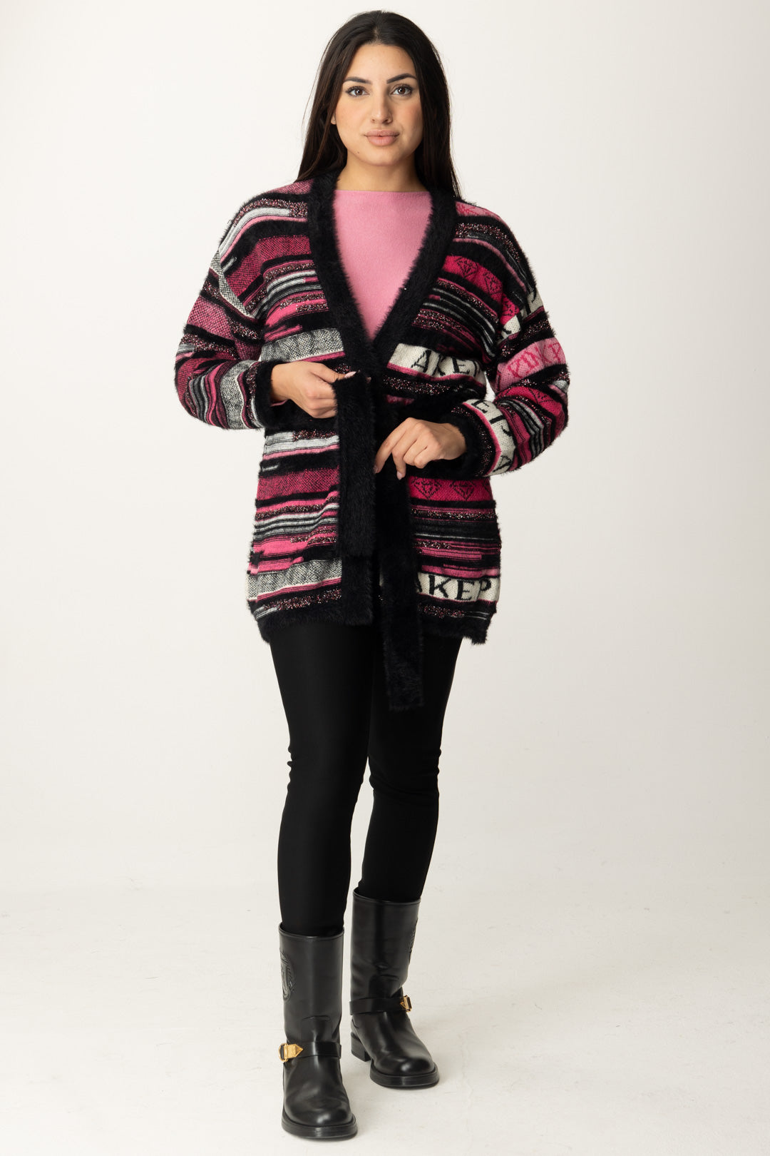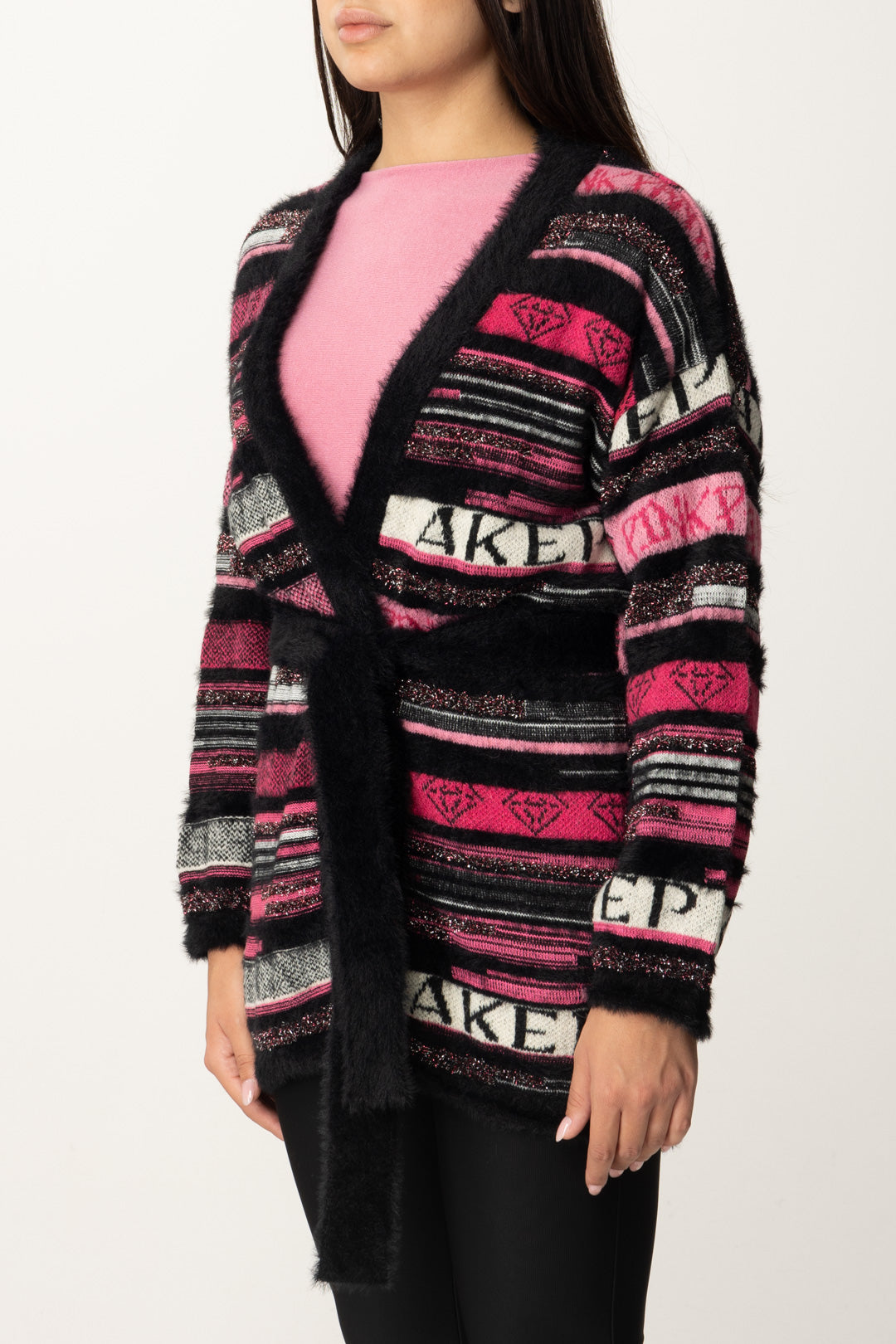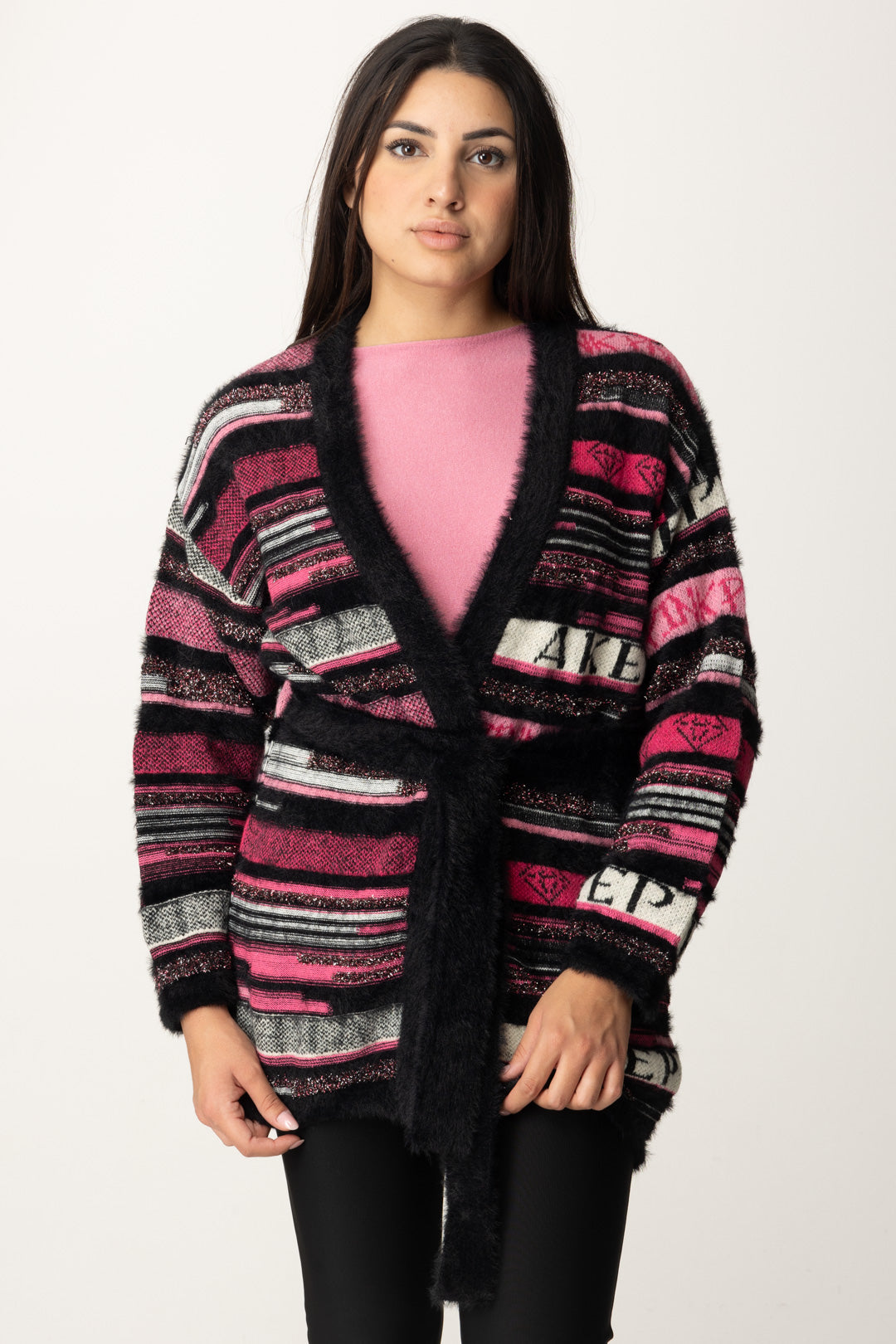 Este cárdigan Akep de la cápsula "Akep x Pink Panter" es una combinación perfecta de estilo acogedor y dinámico, confeccionado en una mezcla de lana y adornado con un estampado de rayas de colores en contraste que a su vez se caracteriza por un patrón Letras que recuerdan la marca y la colaboración. Gracias al cinturón que define la silueta y al estampado gráfico que le aporta personalidad, se convierte en la prenda perfecta para combinar con jeans o pantalones de campana para darle un toque divertido.
