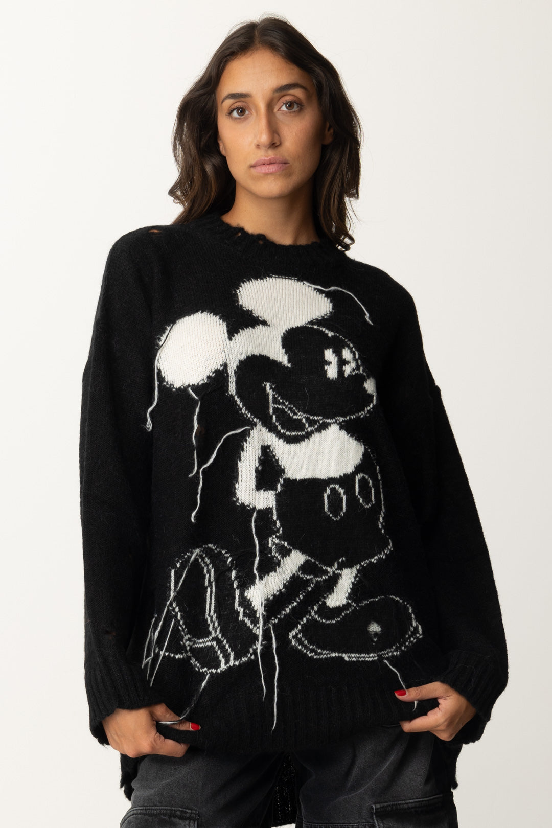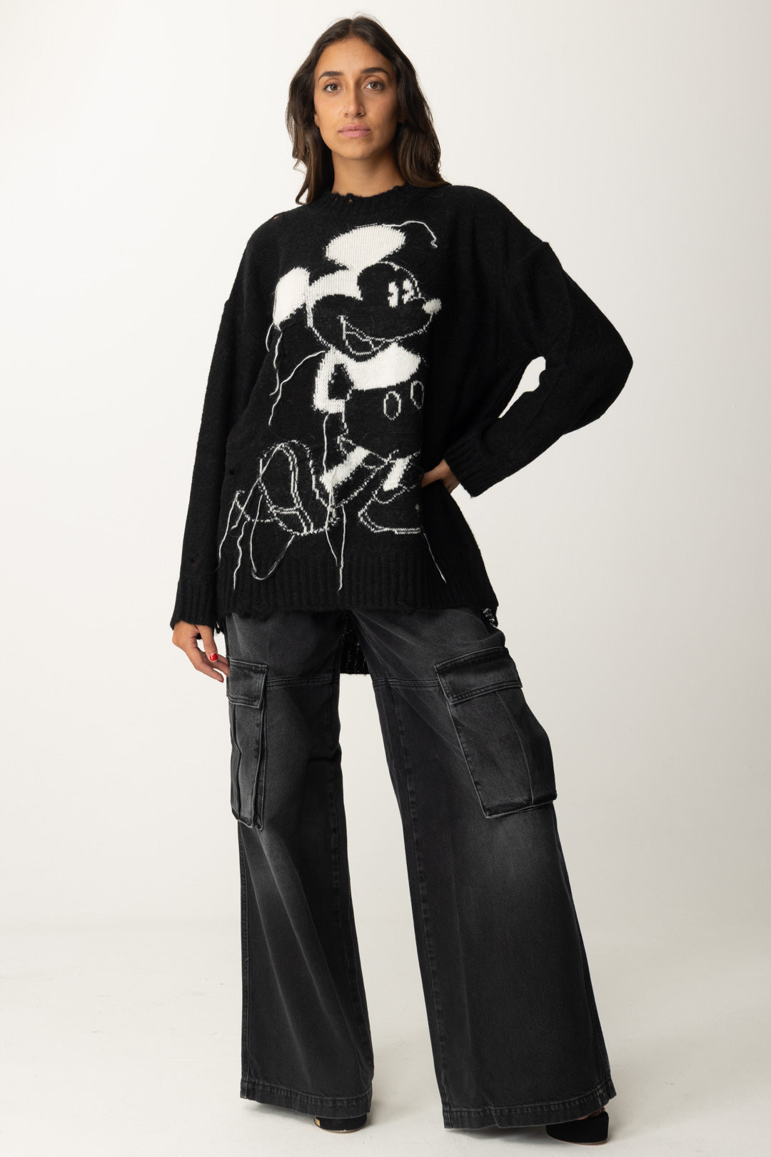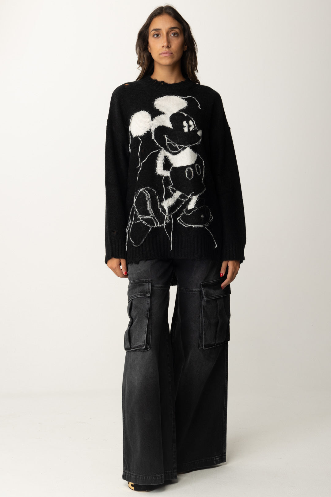 Este maximo pullover Aniyeby confeccionado en mohair de alpaca es una prenda envolvente y cálida, perfecta para la estación fría. El diseño de intarsia de Mickey y el bajo ligeramente redondeado en la espalda, con acabados de flecos, confieren a la prenda un aspecto relajado y atrevido.