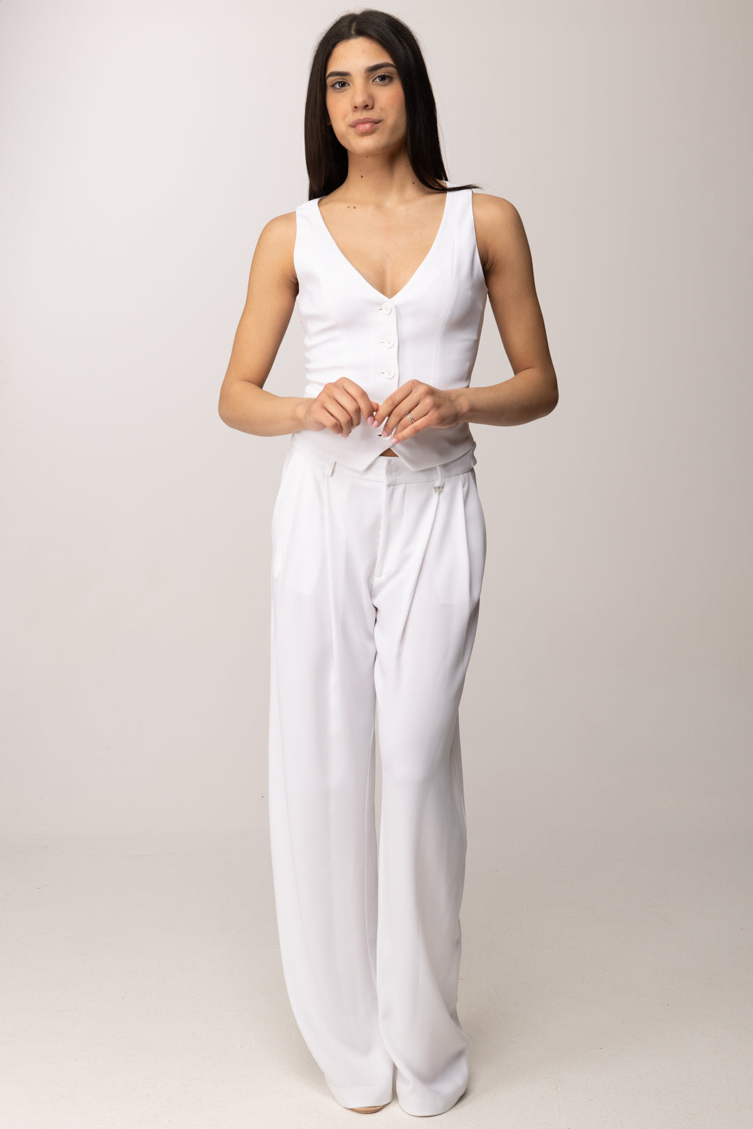 Un capo dal fascino sofisticato ma versatile, questo Top Bella Aniye By è un gilet/top smanicato dallo stile raffinato pensato per chi ama mescolare eleganza e modernità nei propri outfit. Con una scollatura a V profonda e una linea sfiancata, veste la figura con grazia, creando un profilo femminile e deciso. Completano il design le tasche a diletto sul davanti e il piccolo spacco posteriore, oltreche il giondolo logato del brand sul retro.
