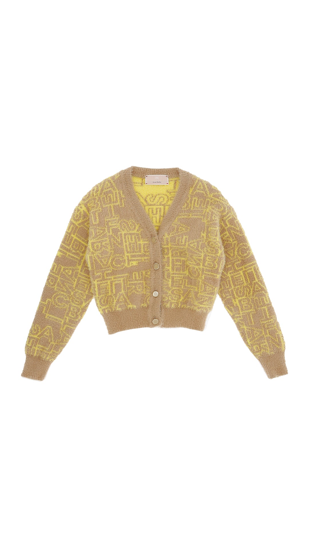 Sfizioso cardigan Elisabetta Franchi La mia bambina, del inconfundible sello gracias al logo lettering que lo caracteriza por todas partes. Corte corto y escote en v, se presta muy bien para ser usado junto a camisas y dolcevitas, y será perfecto para añadir una nota colorida a muchísimos conjuntos 24/7.