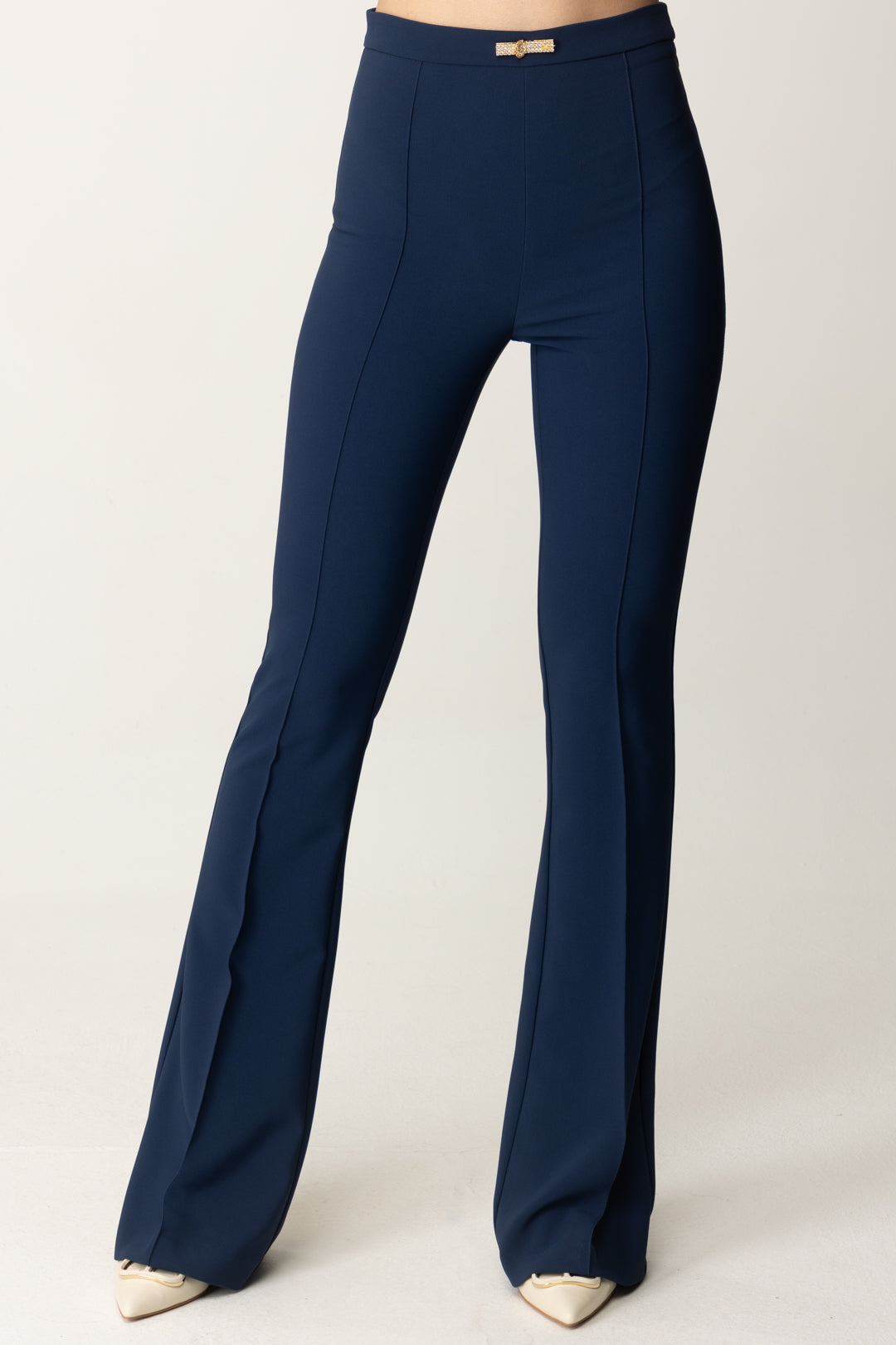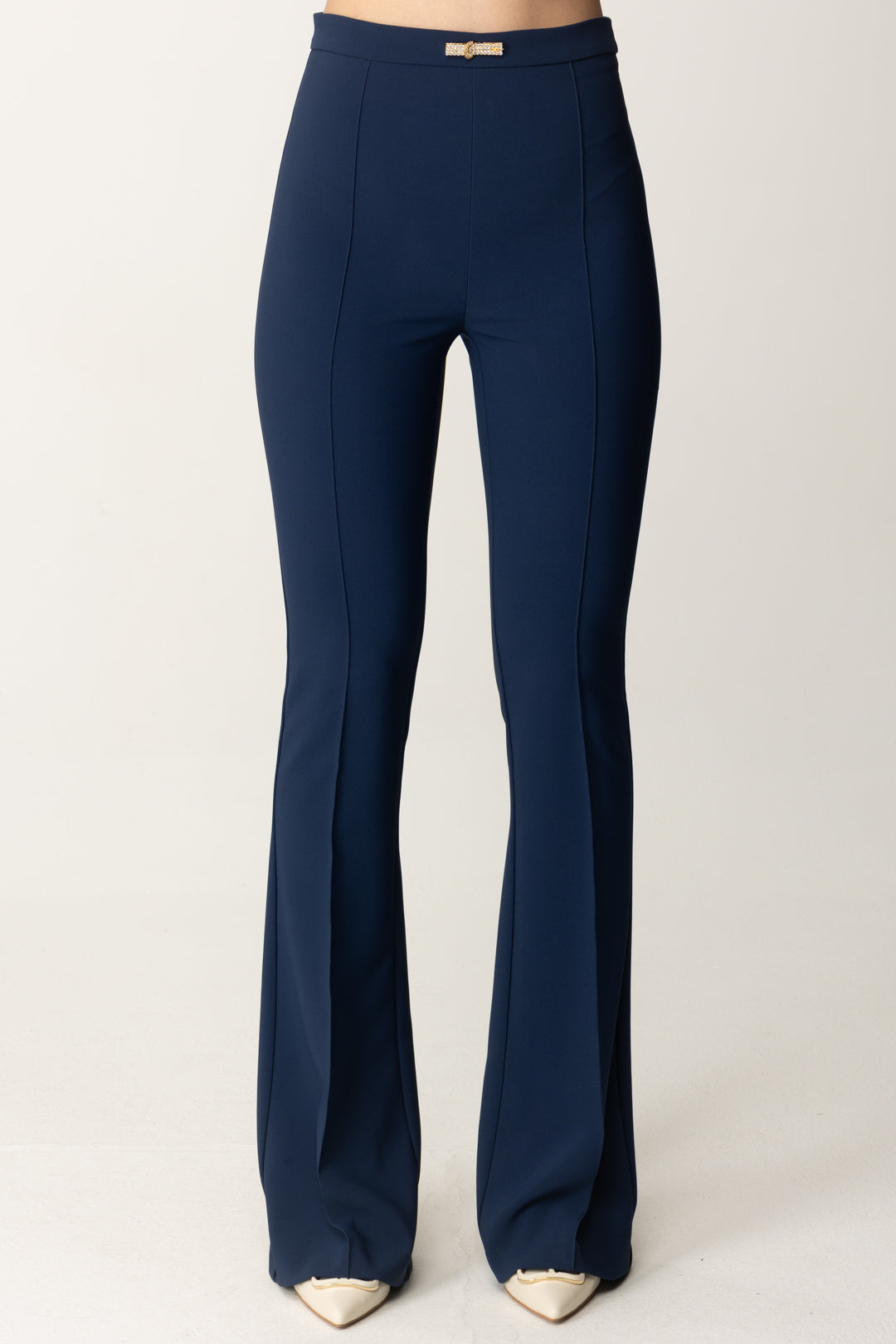 Estos Pantalones Elisabetta Franchi de campana ofrecen un look sofisticado y atemporal, caracterizados por pliegues frontales y un detalle en oro con strass en la cinturilla. Perfectos con una blusa de seda o un top ajustado para un look de oficina o de noche.
