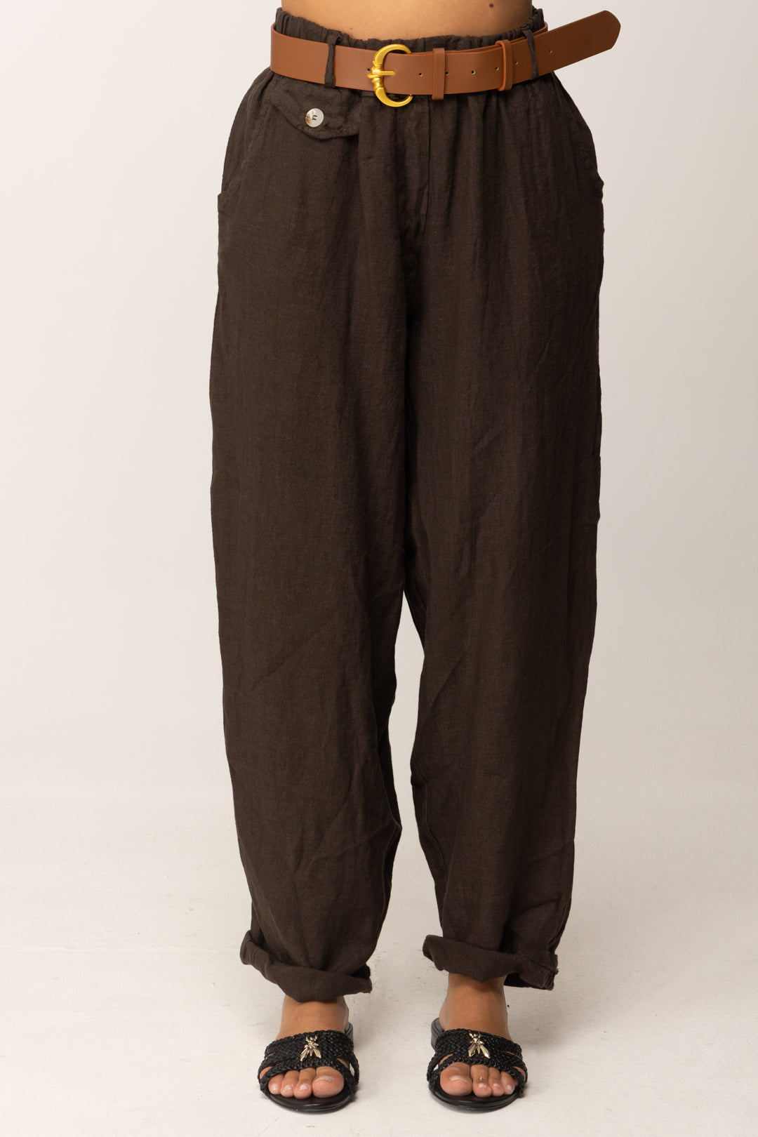 Hay una elegancia espontánea en estos pantalones Khloefemme: una elegancia que no necesita muchas palabras, pero que se nota en cada detalle. El tejido de lino, con textura natural y aireada, hace que estos pantalones sean perfectos para la temporada cálida, mientras que el corte amplio y desestructurado ofrece libertad de movimiento sin renunciar al estilo. La cintura alta con fruncido y el cinturón de piel sintética marrón con hebilla dorada añaden un toque refinado y contemporáneo, realzando la cintura incluso en las siluetas más suaves. El dobladillo ligeramente enrollado completa el look con un detalle informal y chic.