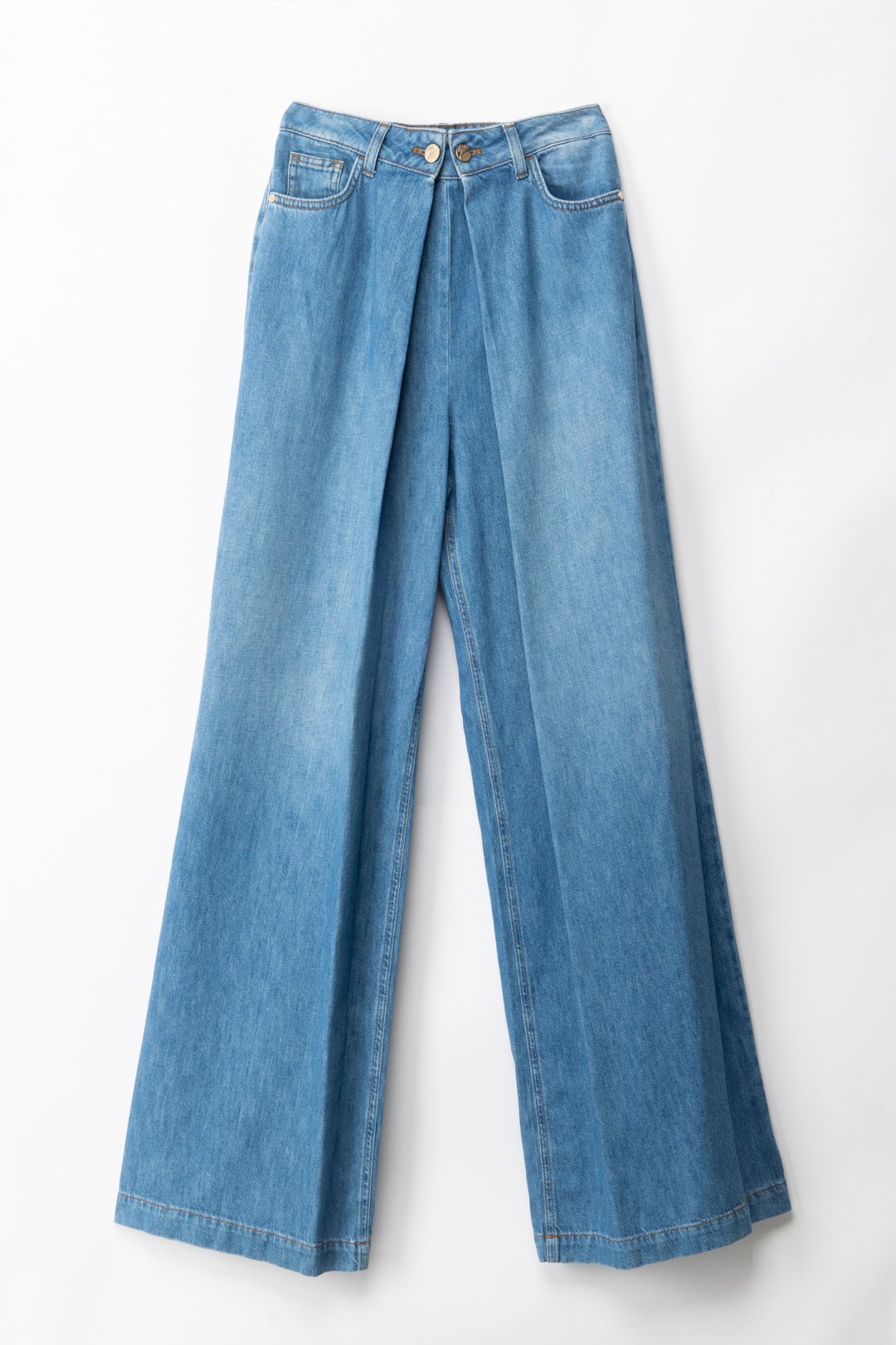 Jeans Wide Leg con PiegheMEDIUM BLUE
