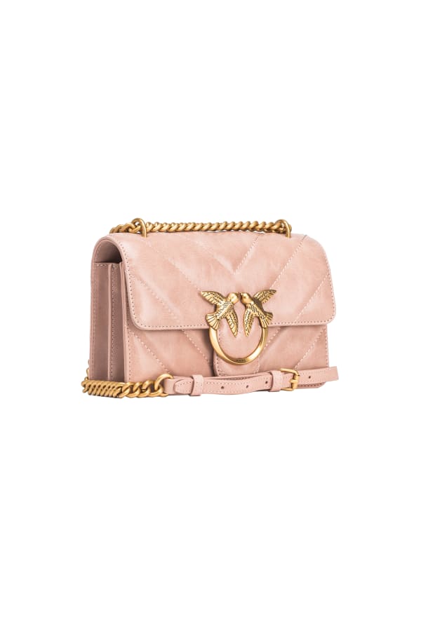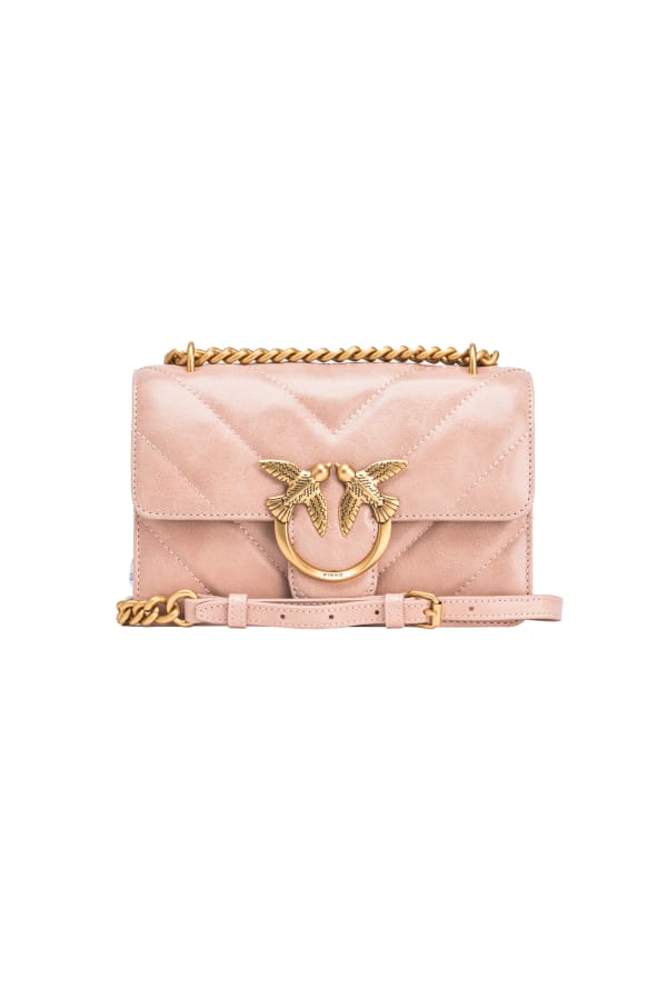 Nunca hay suficiente Love Bag Pinko y realmente hay uno para cada ocasión: a nosotros también nos enamoró esta versión mini, confeccionada en piel con efecto desgastado acolchado en forma de chevrón y caracterizada por el inevitable Love Logotipo de pájaros y correa de hombro de cadena deslizante. Perfecta para tus conjuntos más chic, a los que podrás añadir un toque de estilo gracioso y atemporal.