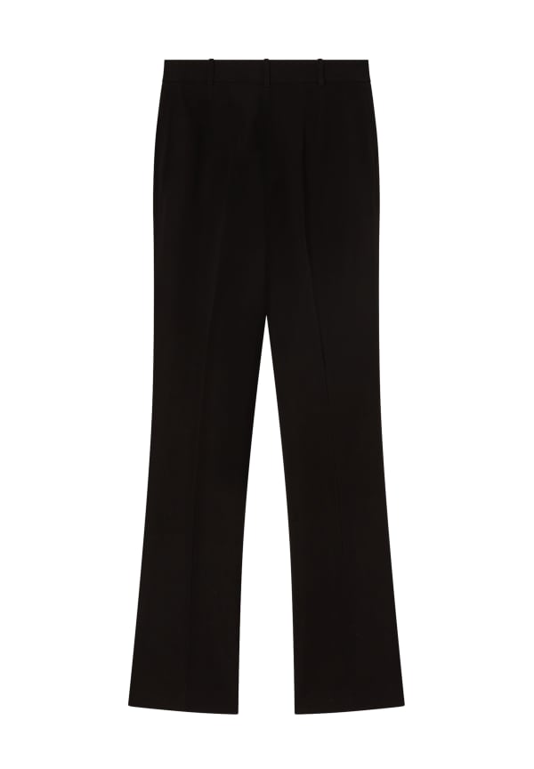 Pantalón Pinko de cady técnico de línea acampanada, sencillo y versátil, perfecto para realzar cualquier silueta. Cintura estándar con trabillas para que puedas añadir un accesorio si es necesario, el vuelo de la pierna comienza desde la rodilla hacia abajo: intenta equilibrarlo visualmente con un blazer entallado que enfatice la cintura o un bonito top con hombros estructurados.