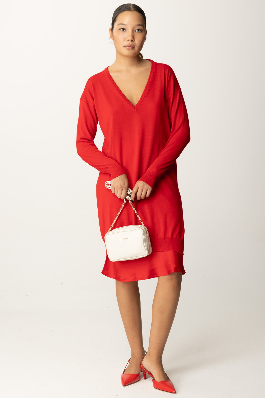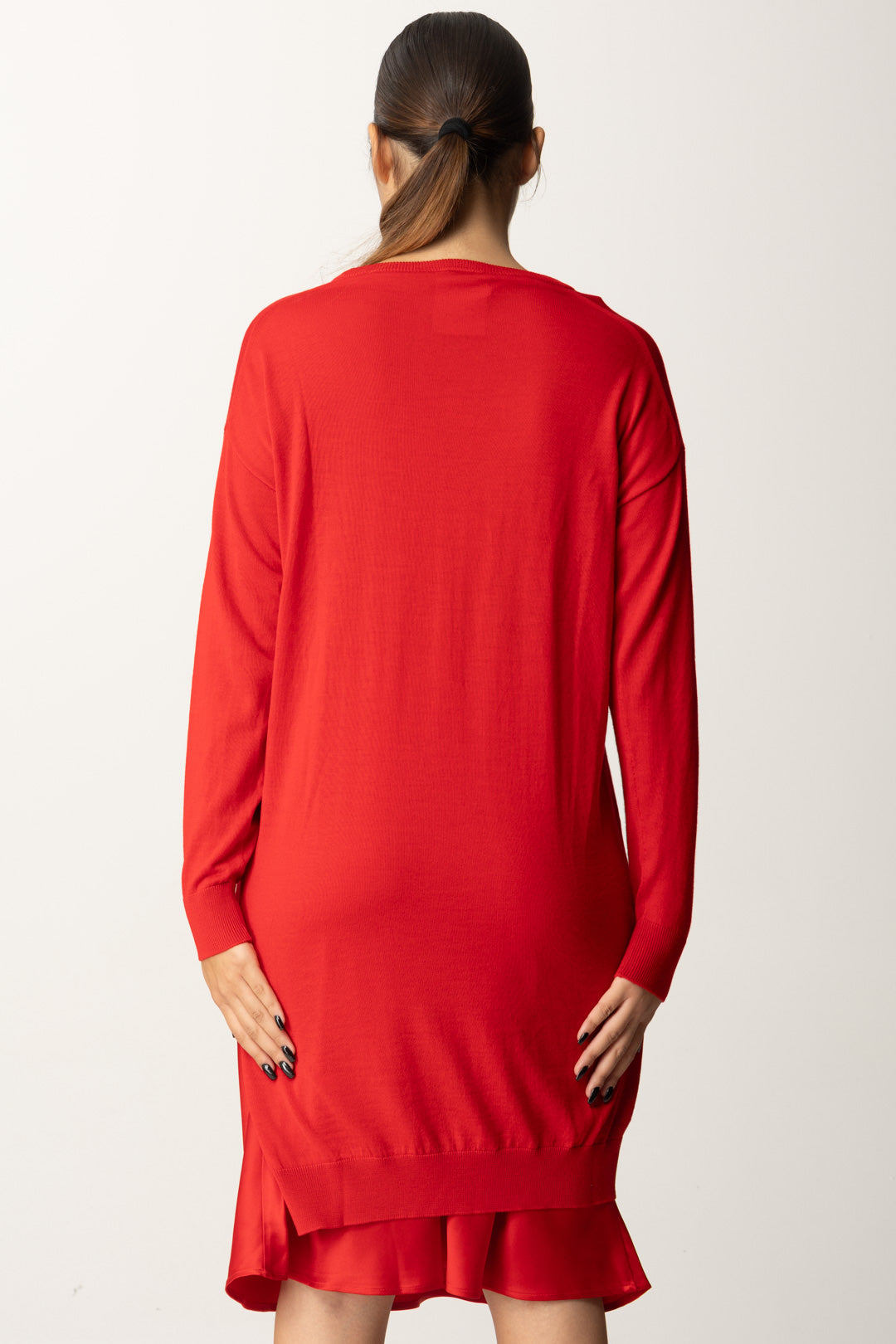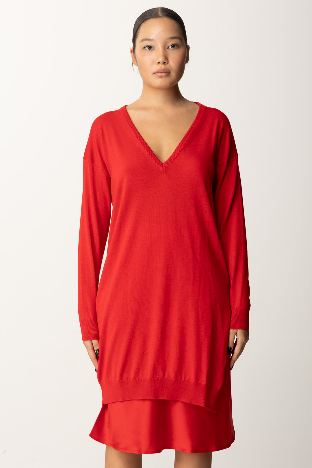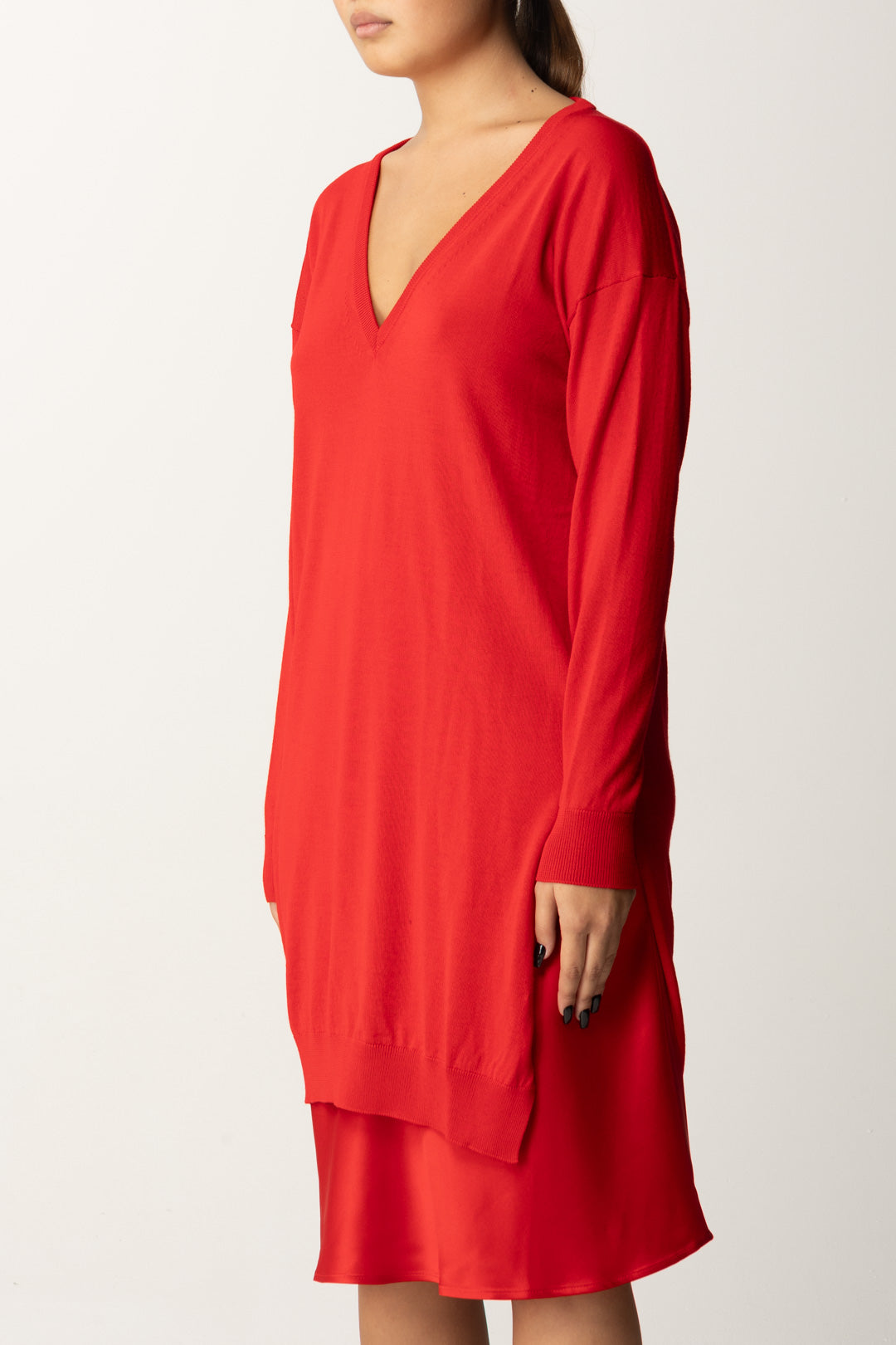 Este vestido midi Semicouture es perfecto para aquellos que quieren hacer una declaración de estilo manteniendo un encanto minimalista que también es adecuado para todos los días. El corte holgado lo hace cómodo, pero el escote en V lo hace femenino y seductor. El efecto chic lo da el bajo de la falda de raso de doble capa que añade un lado original y refinado al total look. Añade sandalias elegantes y joyas brillantes para un look de noche glamuroso o mocasines y bolso al hombro para un conjunto cómodo.