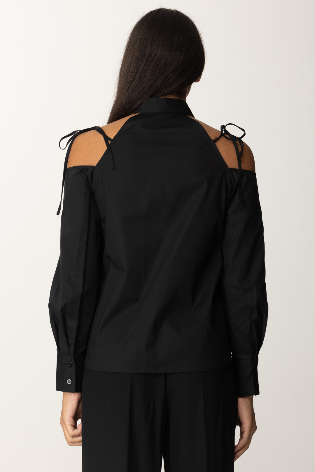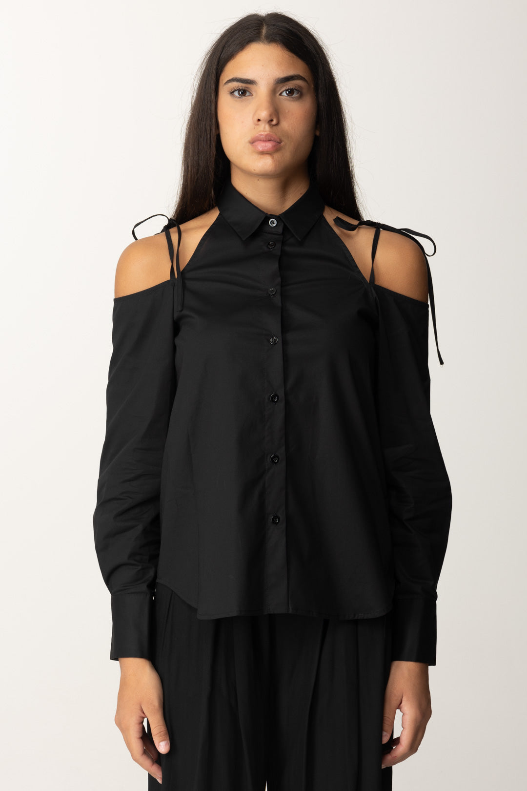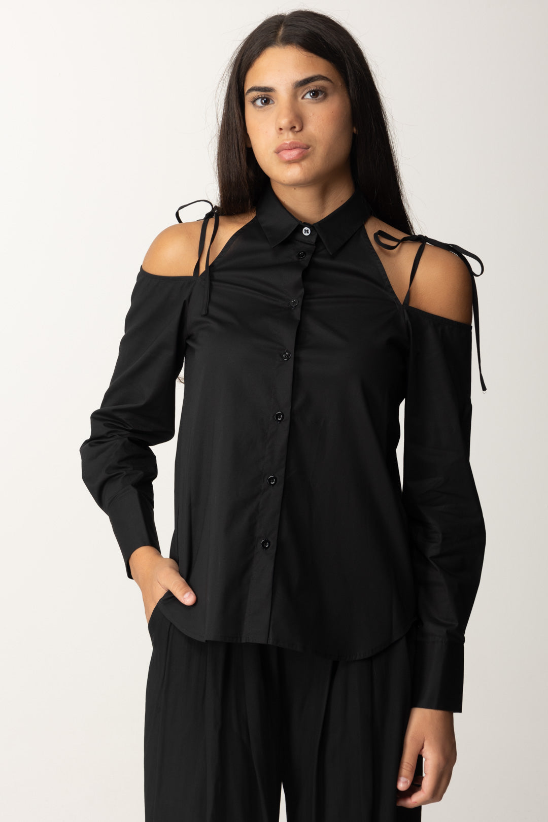 Camisa semi costura refinada y femenina, con un toque original que la diferencia del modelo clásico. La apertura en los hombros con lazos crea un estilo atrevido que combina a la perfección con el resto de la silueta. Ideal para llevar con jeans o pantalones para un look efectivo pero con un toque original.