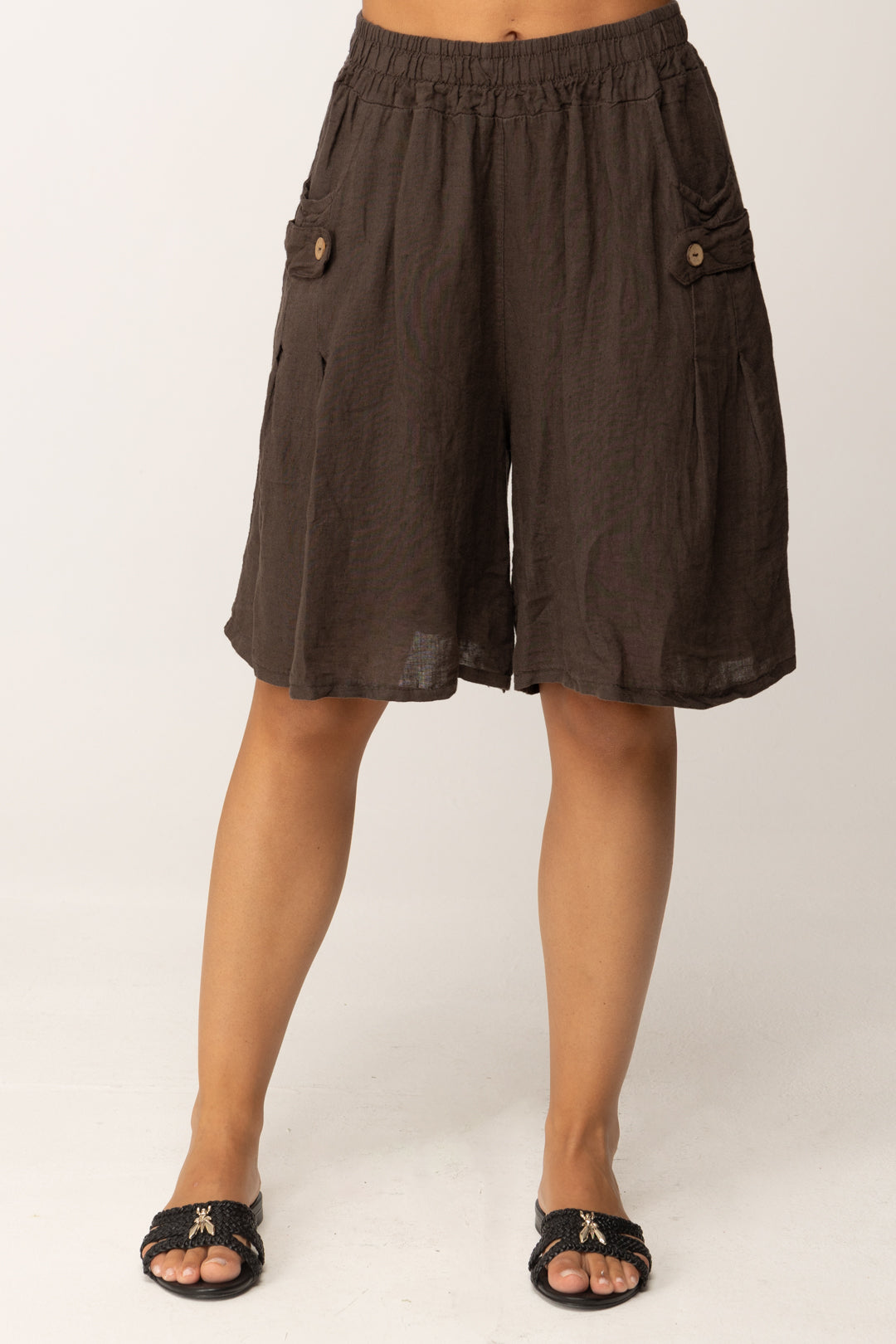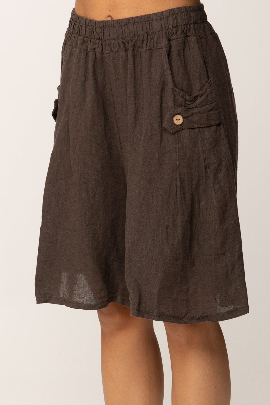 Quand fonctionnalité et esthétique se rencontrent, naissent des pièces comme ces bermudas Khloefemme : pratiques, affirmés et avec une touche urbaine qui les rend irrésistibles. Réalisés en coton rigide mais léger, ils se caractérisent par une structure épurée enrichie de maxi poches appliquées latéralement, inspirées du style cargo revisité à la mode féminine. La coupe ample offre confort et une silhouette décontractée, tandis que la taille haute avec passants les rend facilement associables même avec des ceintures statement. La couleur marron chaud et neutre se prête à des combinaisons infinies : du total look ton sur ton aux palettes naturelles les plus sophistiquées.