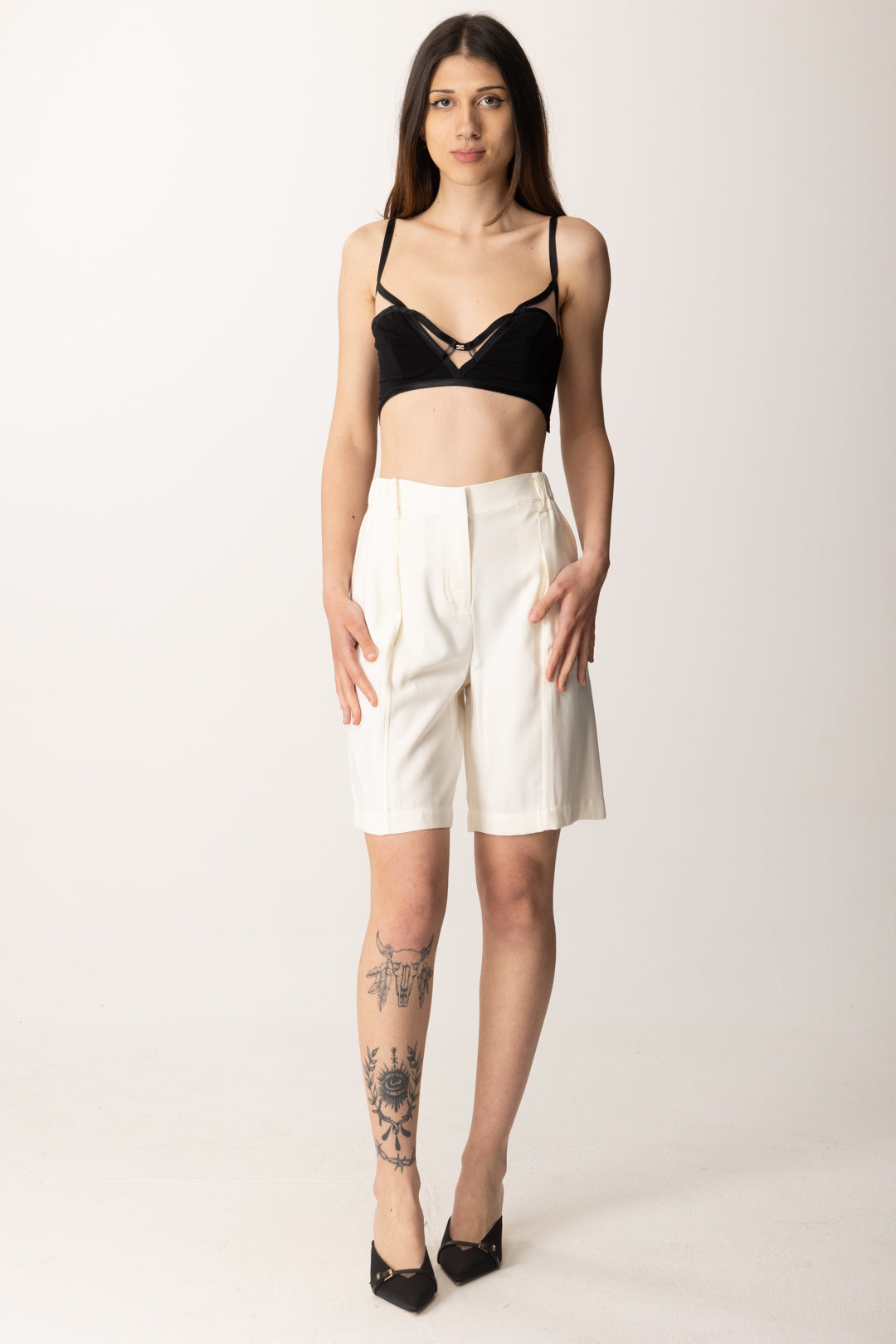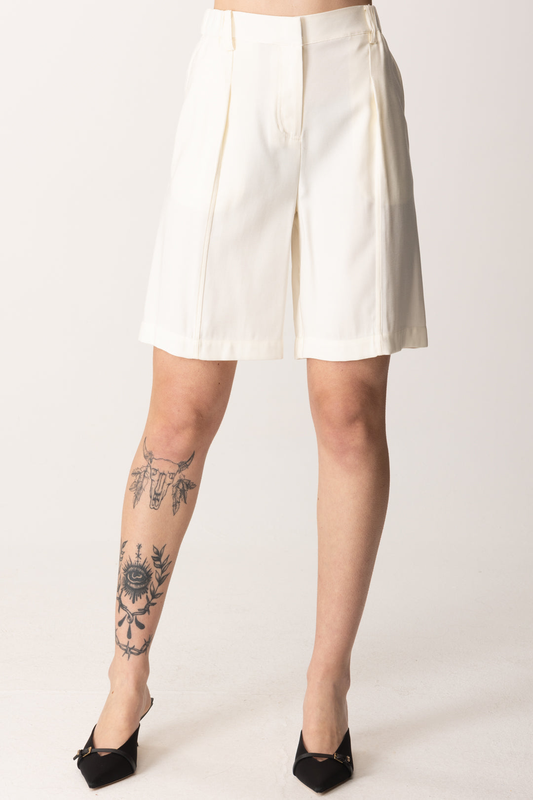 Bermuda Patrizia Pepe au style minimaliste mais impeccable, avec une coupe sartoriale et des plis frontaux. Idéaux pour un look urbain et sophistiqué. Associez-les à une chemise oversize ou à un crop top structuré pour équilibrer les volumes