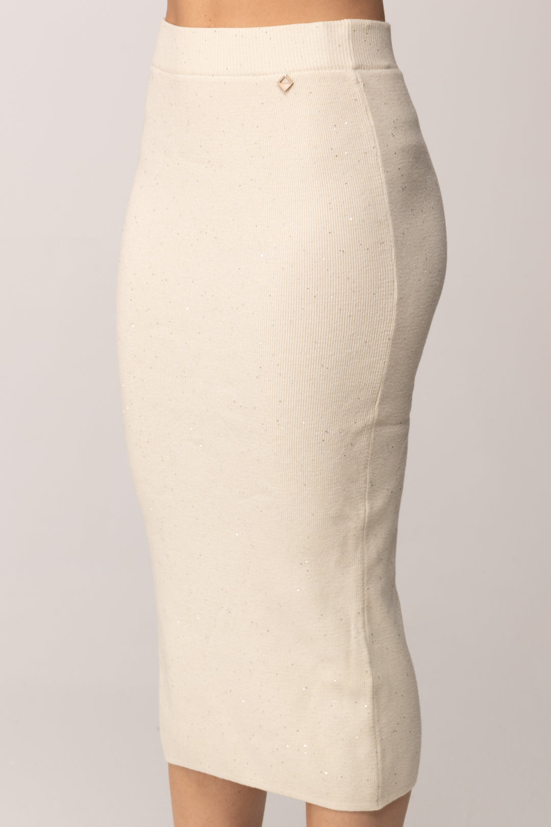 Essenziale ma luminosa, questa gonna Meme Road interpreta il concetto di femminilità contemporanea con una linea pulita e un tocco di luce discreta. Realizzata in maglia compatta, avvolge la silhouette con naturalezza grazie al fit aderente e alla costruzione elasticizzata, valorizzando le forme senza costringere. I micro glitter distribuiti sulla superficie aggiungono una nota raffinata e sofisticata, perfetta per elevare anche gli outfit più minimal.La lunghezza midi la rende estremamente versatile e adatta a più momenti della giornata: elegante senza risultare formale, è il capo ideale quando vuoi sentirti curata ma non eccessiva. La vita regolare assicura comfort e stabilità.