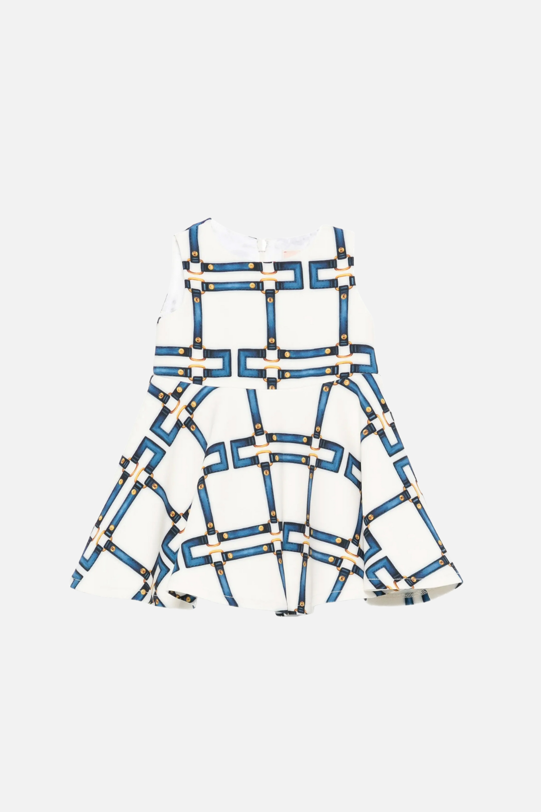 Questo abito Elisabetta Franchi La Mia Bambina interpreta l’eleganza iconica del brand in una versione raffinata e perfettamente proporzionata per le più piccole. La silhouette smanicata è studiata per essere pulita e confortevole nella parte superiore, mentre la gonna svasata accompagna il movimento con naturalezza, creando un equilibrio armonioso tra struttura e leggerezza.