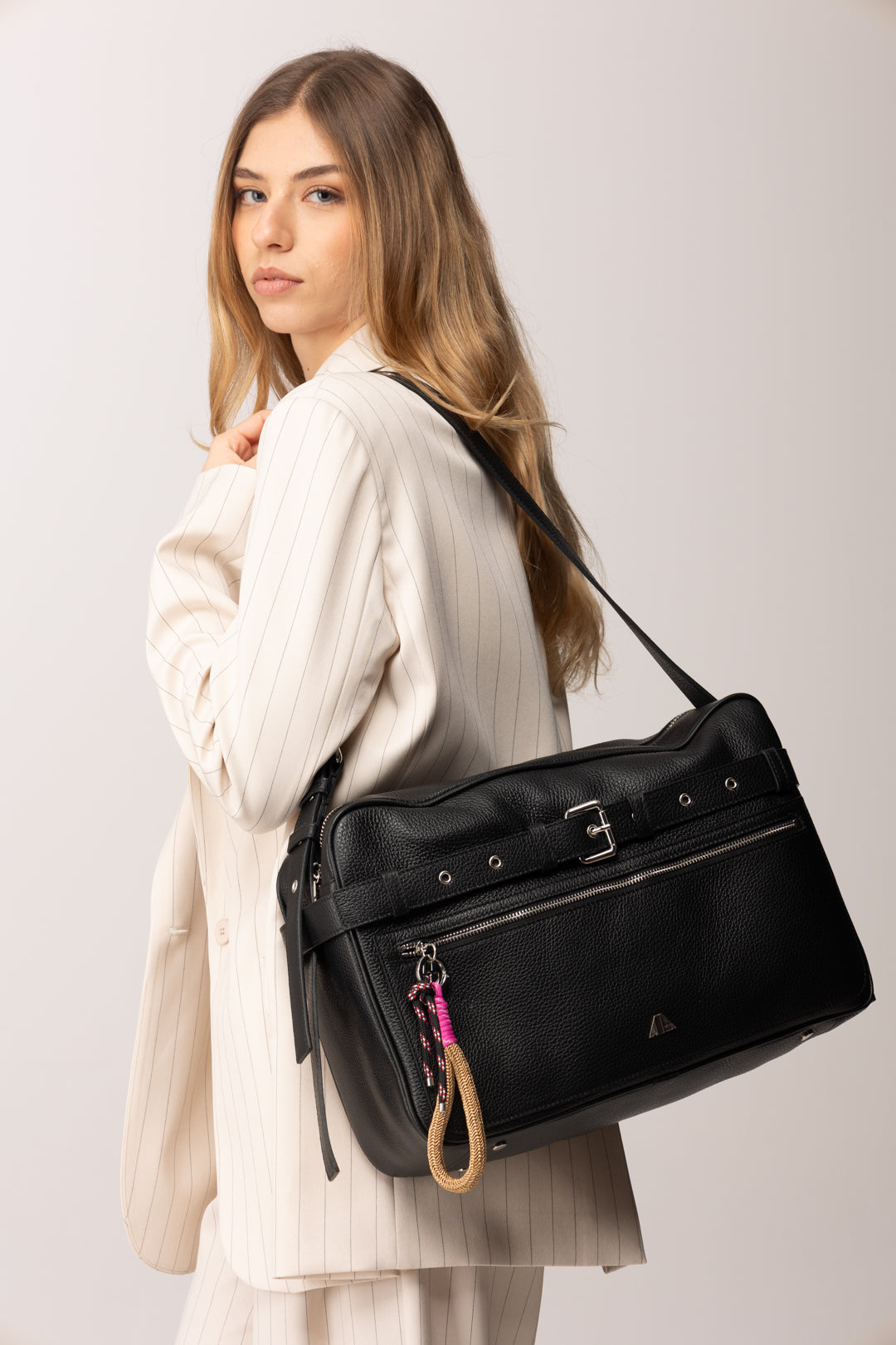 Portala sotto il braccio per un look urban-chic deciso oppure con la tracolla regolabile per uno styling più casual e dinamico. Questa bag si adatta con naturalezza sia a outfit da giorno con denim e sneakers che a combinazioni più raffinate con blazer e stivaletti, diventando il tuo alleato perfetto per spostamenti in città, aperitivi o appuntamenti informali.