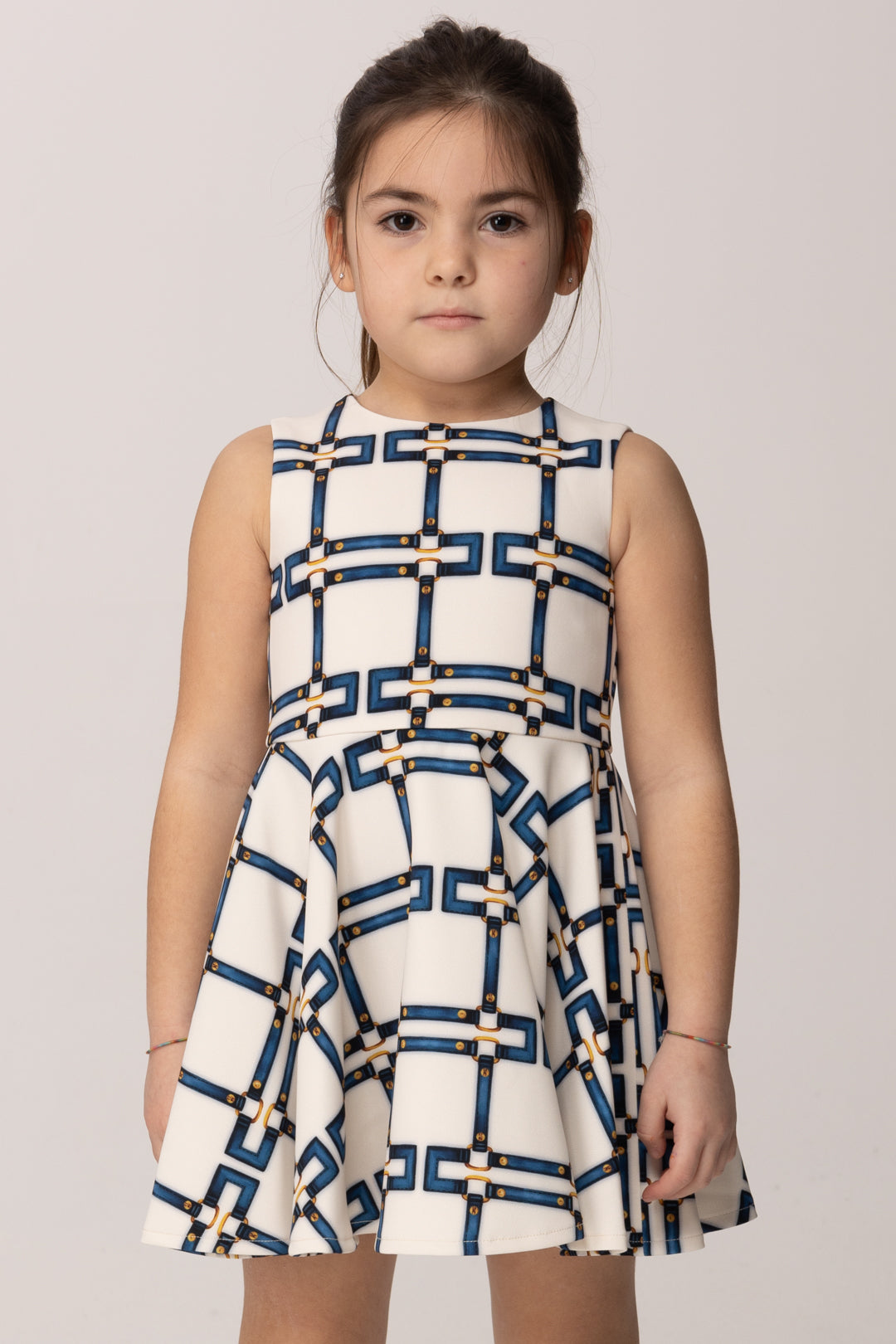 Il motivo grafico ispirato alle iconiche catene del brand percorre l’intero capo con un ritmo regolare e raffinato, donando all’abito un’estetica elegante ma giocosa, perfettamente calibrata per il mondo baby. La stampa diventa protagonista senza risultare eccessiva, rendendo questo modello ideale anche per occasioni speciali e momenti da ricordare.