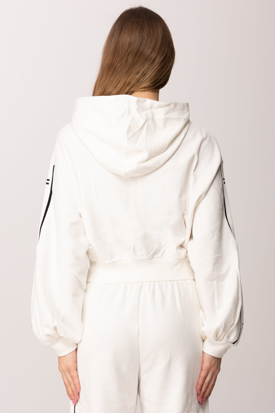 Felpa con Cappuccio e Bande LogateAVORIO/AVORIO-NERO