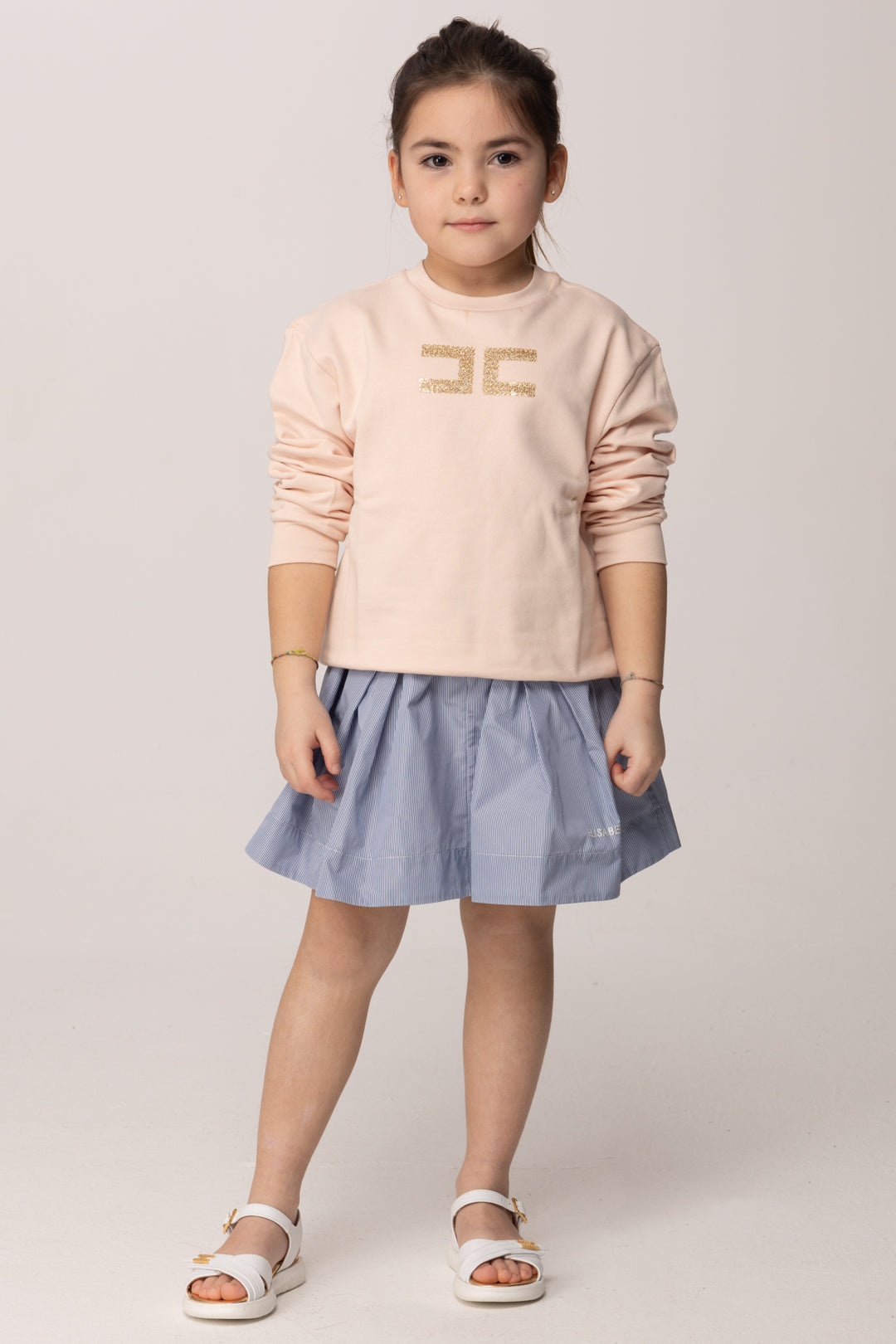 La linea regolare rende questa felpa estremamente versatile: facile da abbinare a gonne, pantaloni o bermuda coordinati, si presta a creare outfit pratici ma curati, capaci di mantenere un’estetica ordinata e contemporanea. Un capo passe-partout che coniuga funzionalità e gusto fashion, firmato Elisabetta Franchi La Mia Bambina.
