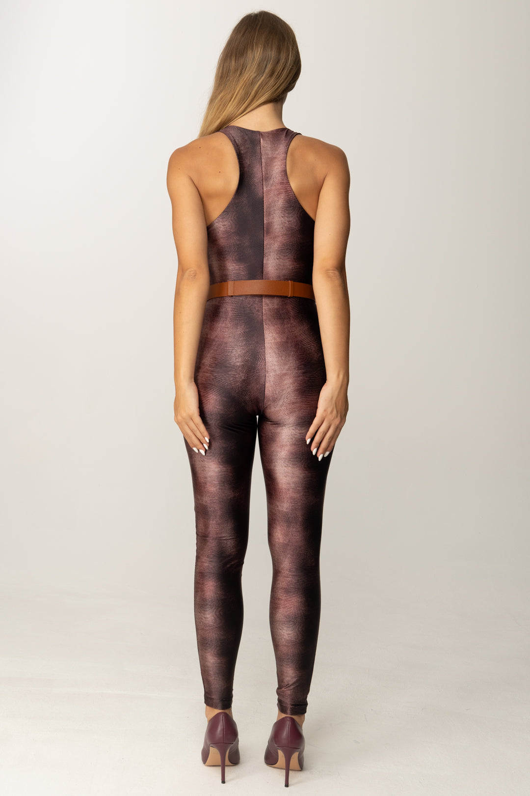Silhouette seconde peau pour cette tuta Elisabetta Franchi réalisée en lycra, qui suit précisément vos courbes et met en valeur chaque point, y compris la taille grâce à la ceinture avec logo en métal doré fournie. L'encolure olympique valorise le décolleté avec naturel, tandis que l'imprimé python, rendu subtil par des nuances sophistiquées, confère un caractère graphique affirmé.