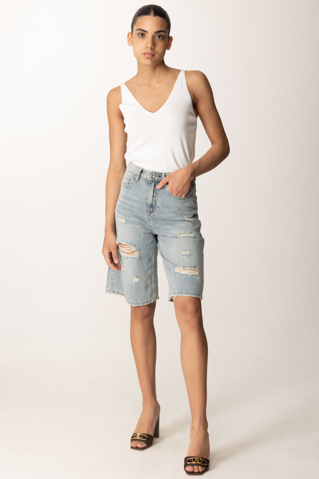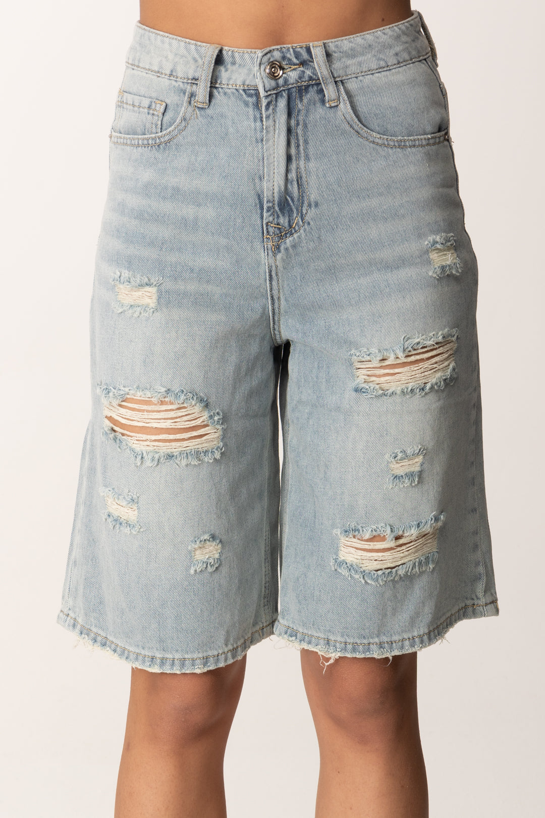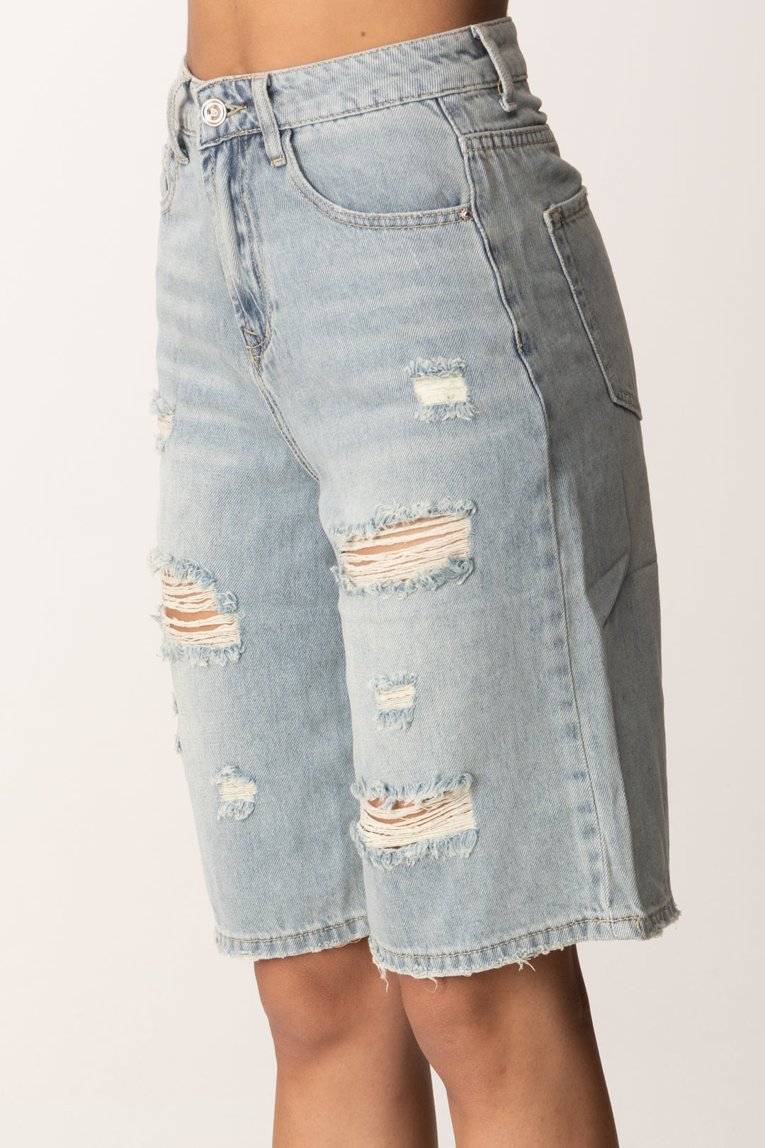 Un bas pensé pour enrichir vos tenues de loisirs avec une solution fraîche qui ne se démode jamais : profitez au maximum de ce bermuda en jean Khloefemme, caractérisé par un lavage clair et des déchirures effet destroyed à l'avant qui donnent au vêtement un esprit très adolescent et insouciant. Ces bermudas en denim sont un vêtement frais et polyvalent, que vous pouvez combiner dans des styles à la fois extrêmement urbains et plus chics. Certainement adaptés à être portés avec des maxi t-shirts et des baskets, ou des débardeurs basiques et des chaussures confortables pour les loisirs ou une excursion pour vos sorties, vous pouvez exploiter leur ambiance décontractée et énergique pour créer des tenues encore plus féminines. Comment les porter dans ce cas ? Avec une chemisette, une ceinture à la taille et une sandale à talon, ou encore avec un débardeur crochet et des accessoires dans une direction boho-chic pour créer un look qui joue avec les dissonances.