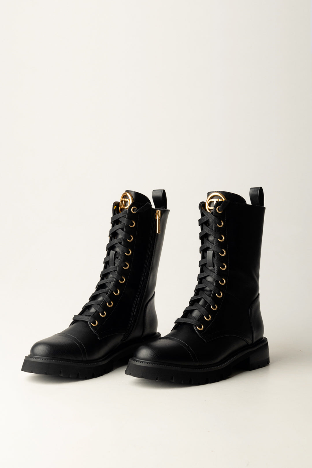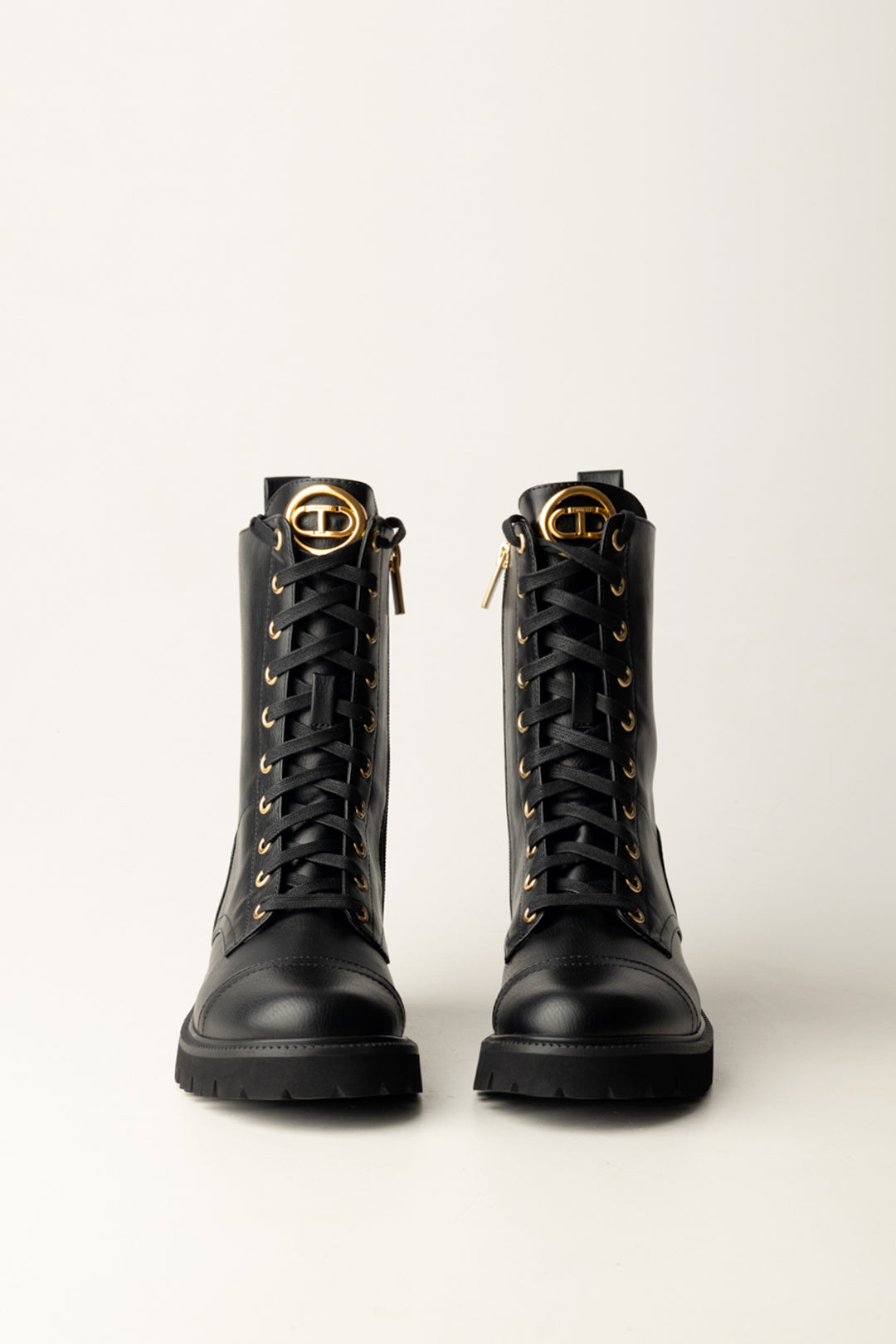 Version lacée et essentielle pour ces anfibi Twinset, réalisés en cuir naturel et illuminés par la plaque logotée à l'avant avec le logo Oval T. Ils s'enfilent en un instant grâce à la boucle à l'arrière qui facilite l'enfilage et à la fermeture éclair latérale, du côté intérieur pour ne pas altérer le design minimal de cette chaussure.