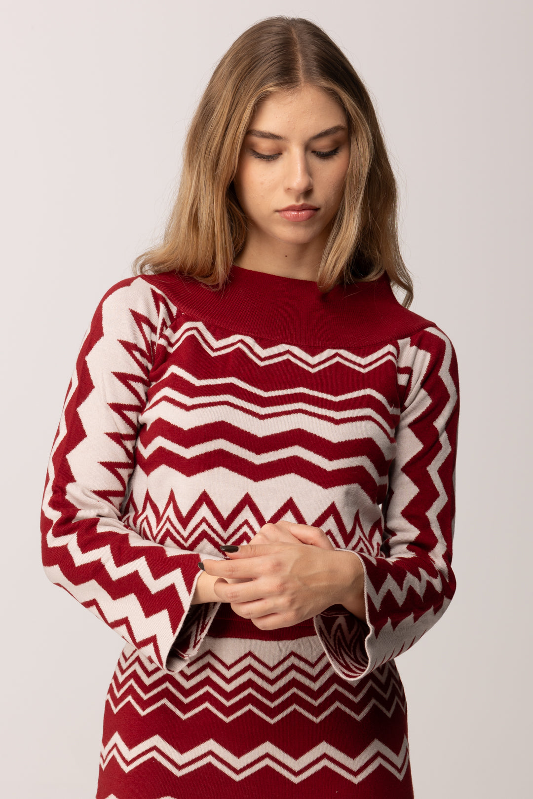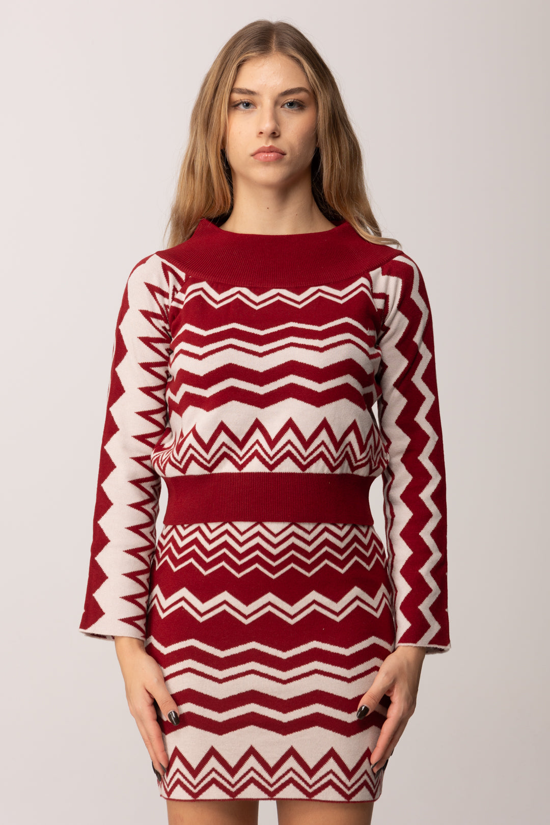 Projekt maglia Akep z dekoltem Shiffer to hymn na cześć współczesnej kobiecości. Wykonana z trójwymiarowego jacquardu zygzakowego, uwodzi swoją fakturą i zmysłową linią odsłaniającą ramiona. Kontrast między geometrycznymi wzorami a zwartą strukturą tkaniny tworzy doskonałą równowagę między elegancją a odwagą.