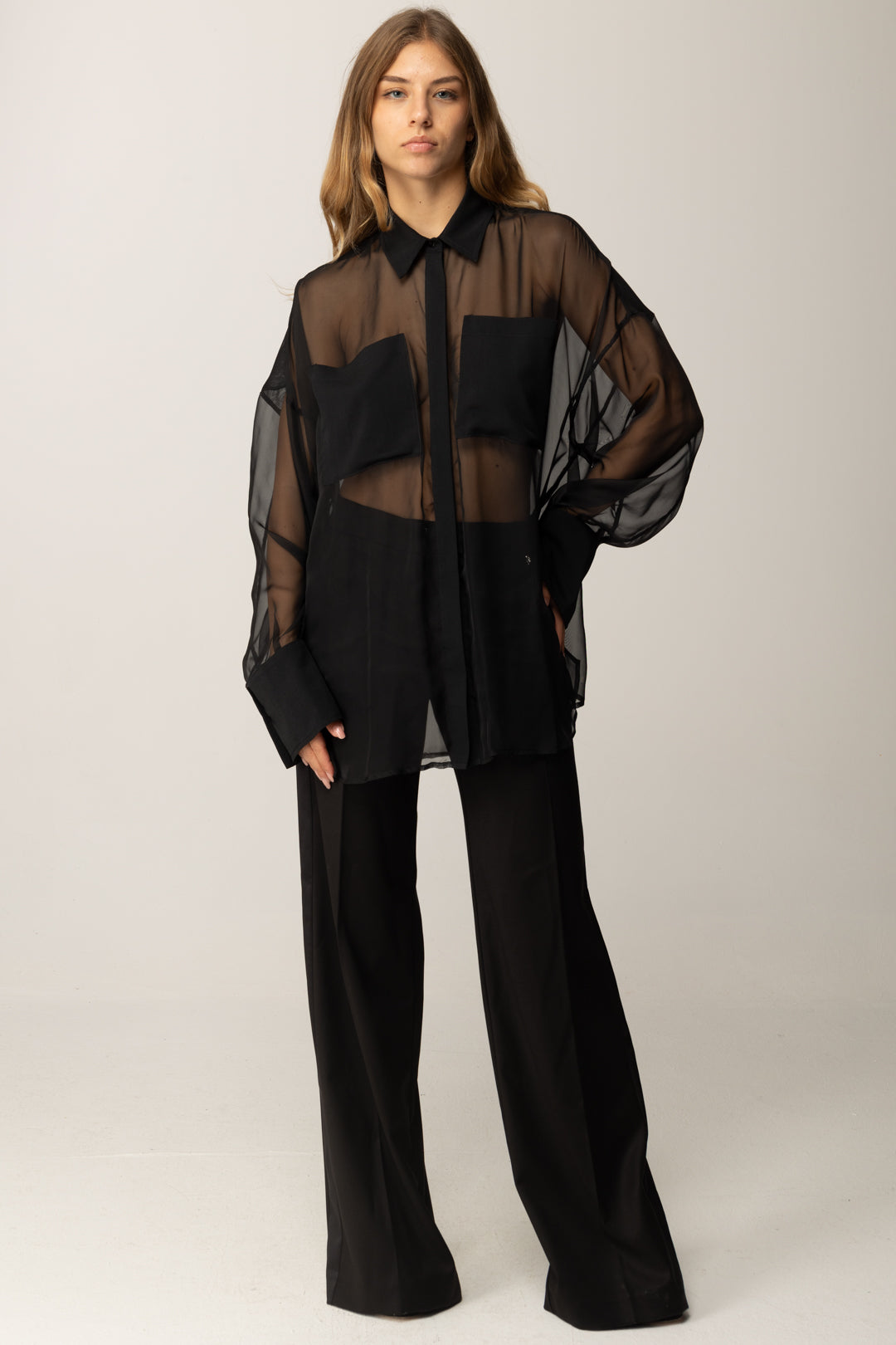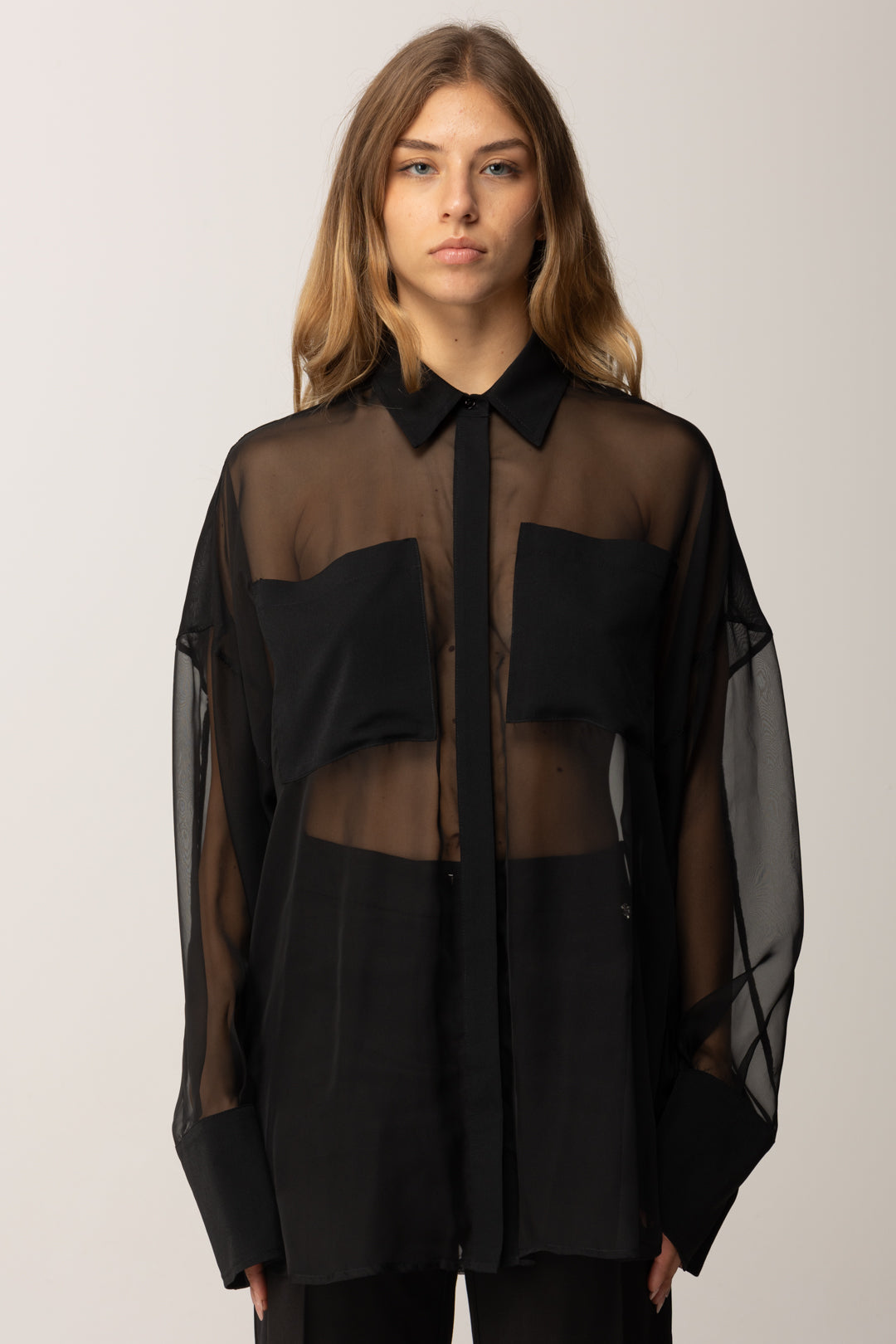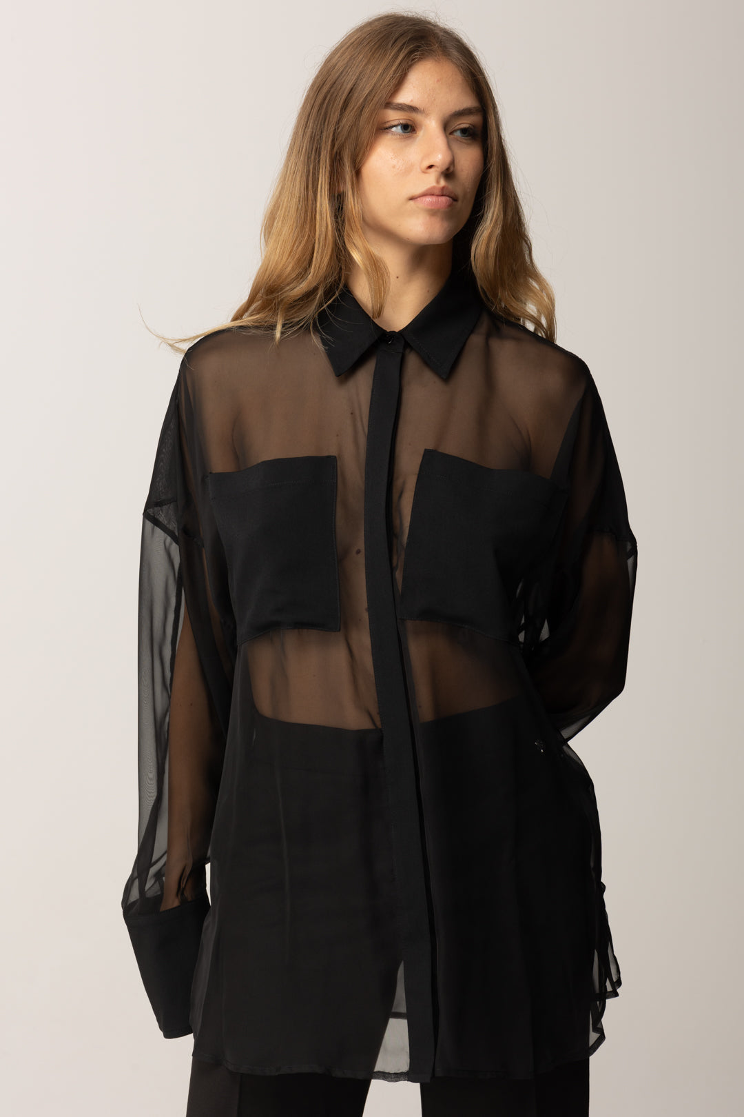 Jeśli lubisz ubrania z efektem see-through, ta camicia Aniye By jest stworzona dla Ciebie: prosta i charakterystyczna, z czystymi i lekkimi liniami, które naturalnie otulają sylwetkę, z wyraźną przezroczystością złagodzoną obecnością kieszeni, strategicznie umieszczonych na wysokości piersi. Kołnierz typu francuskiego i zapięcie z przodu na ukryte guziki kończą ubranie z wyrafinowaną estetyką.