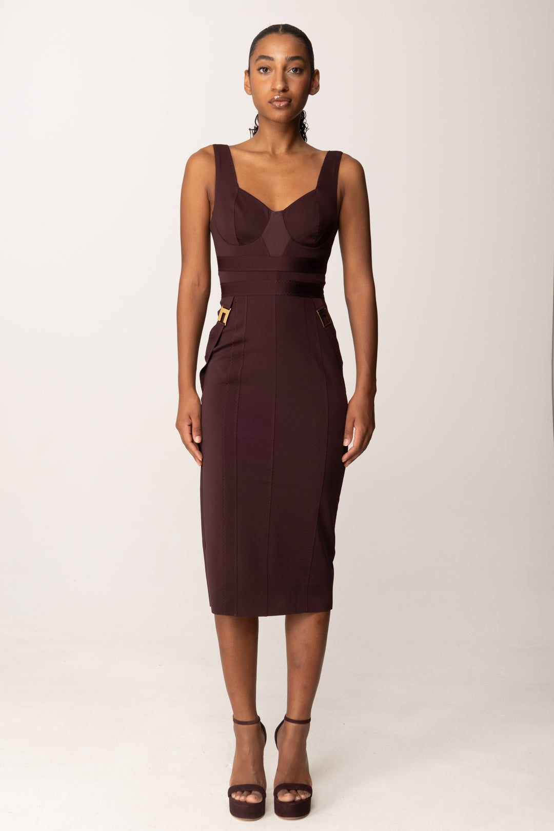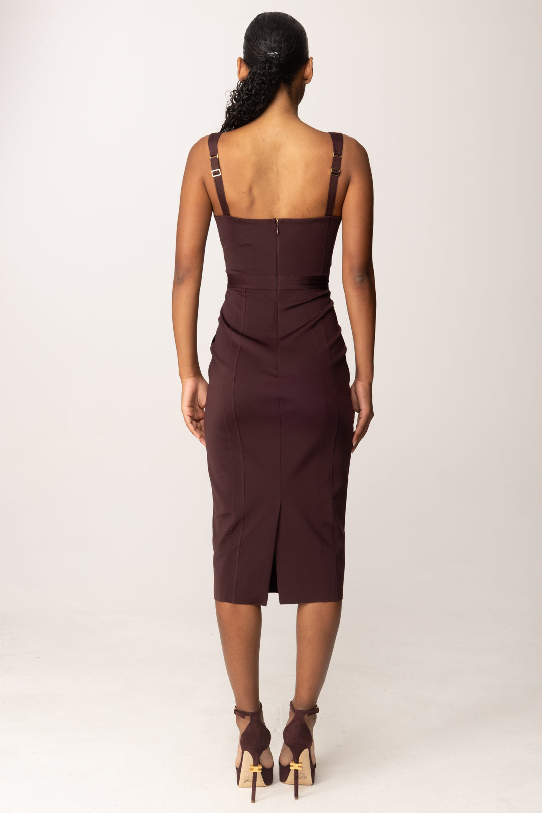 Zmysłowa i wyszukana abito Elisabetta Franchi o kobiecej i otulającej linii, idealna na ważne wieczory lub wydarzenia, na których chcesz wyróżnić się wyrafinowaniem bez przesady. Wykonana z dwukierunkowo elastycznej tkaniny, z wdziękiem rzeźbi sylwetkę dzięki krojowi tubino i konstrukcji bustier, która elegancko podkreśla dekolt. Wstawki z tiulu zdobią przeszycia zygzakowe, które przywołują urok gorsetu w nowoczesnym wydaniu, podczas gdy metaliczne logo na bokach dodaje stylizacji cennego akcentu.
