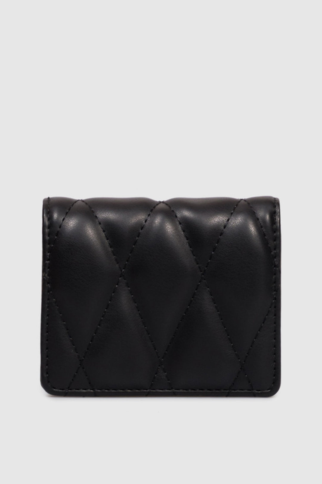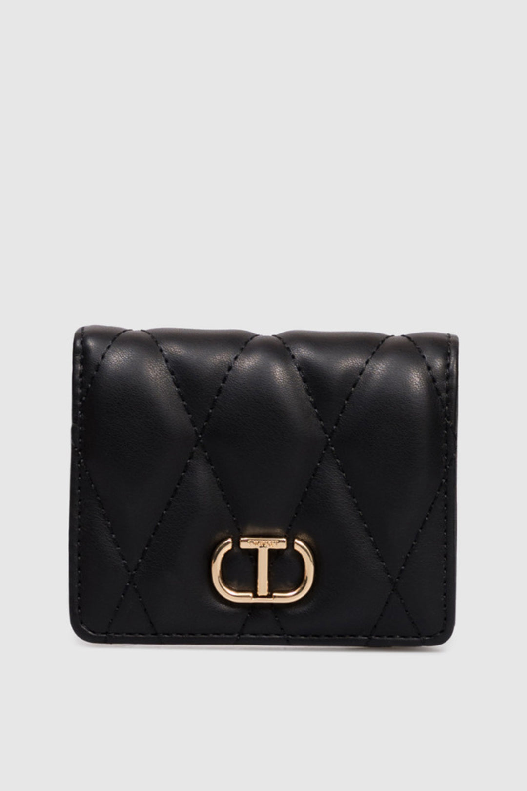 Idealny do Twoich minibag, ten portfel Twinset odtwarza styl dużego formatu w wersji mini. Wykonany z gładkiej ekoskóry z pikowanym wykończeniem, rozświetla go logo Oval T z metalowym złotym aplikatorem na froncie.