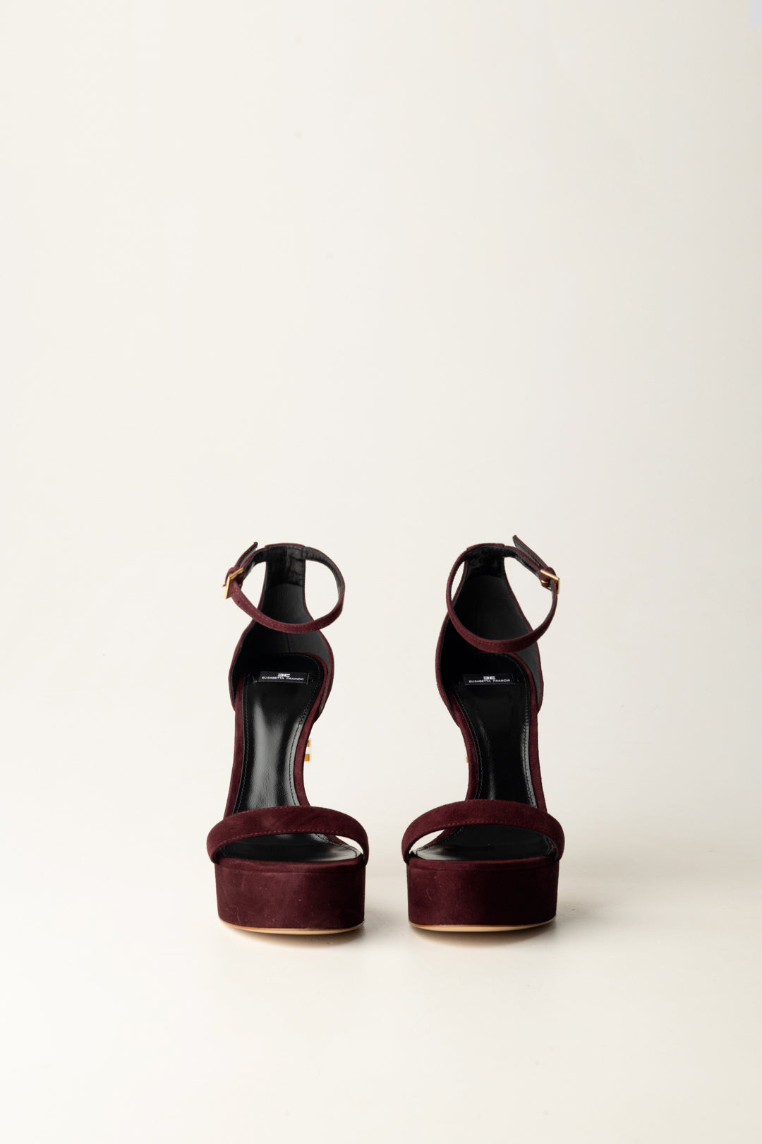 Minimalistyczne i efektowne mogą współistnieć? W tych sandali Elisabetta Franchi tak! Jeśli design jest rzeczywiście prosty, z zamszowym wykończeniem, prostym paskiem z przodu i paskiem wokół kostki, to obcas i platforma nadają Twojemu obuwiu nowy poziom. Logo w zestawie: znajdziesz je osadzone na szpilce, w złocie.
