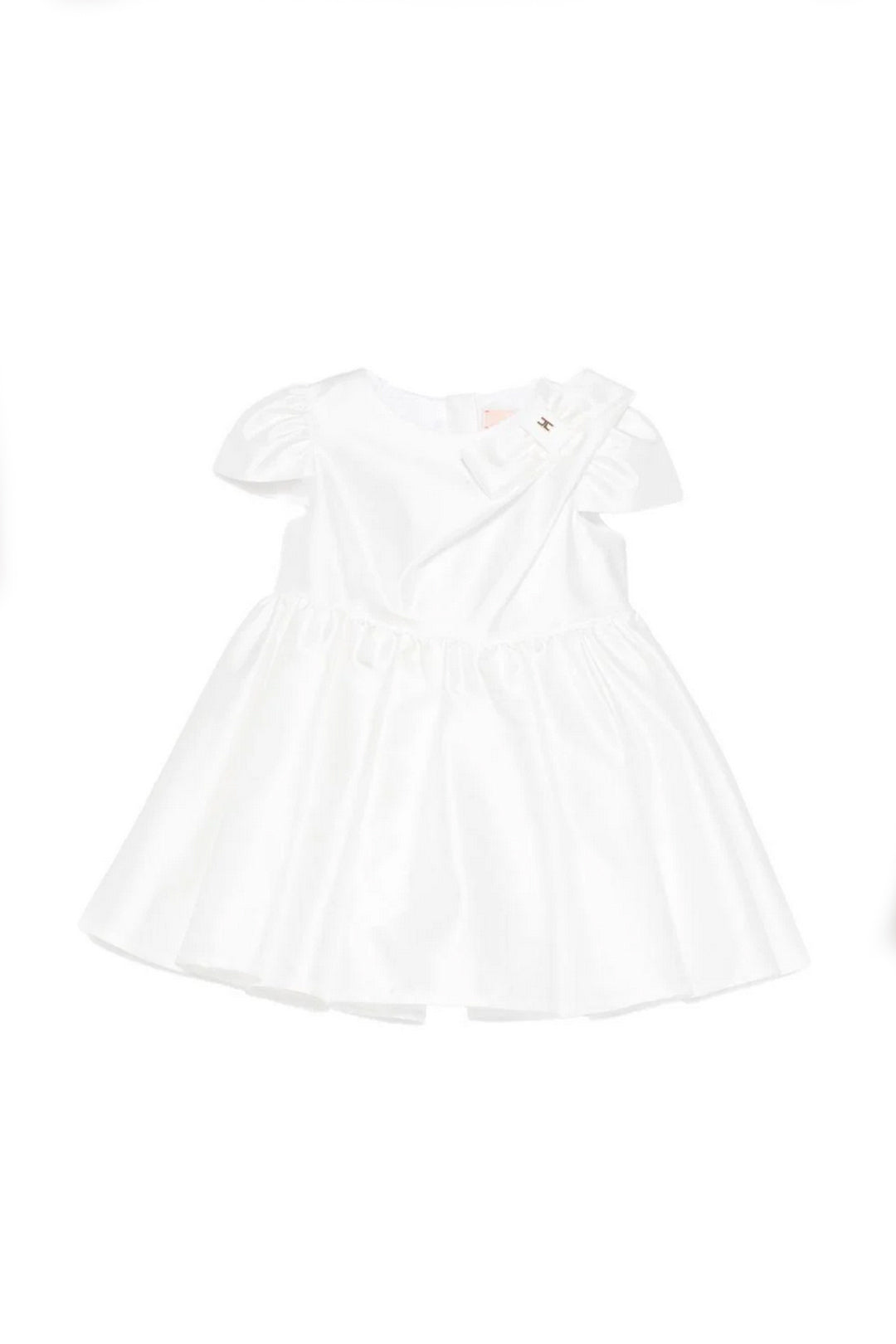 Romantico e strutturato, l’Abito Elisabetta Franchi La Mia Bambina in mikado è pensato per le occasioni più speciali. La silhouette ampia e armoniosa è valorizzata dalla lucentezza delicata del tessuto, che dona volume e definizione alla gonna mantenendo una linea pulita ed elegante. Il motivo fiocco applicato sulla spalla aggiunge un dettaglio scenografico ma raffinato, impreziosito dal logo metallico che firma il capo con discrezione.