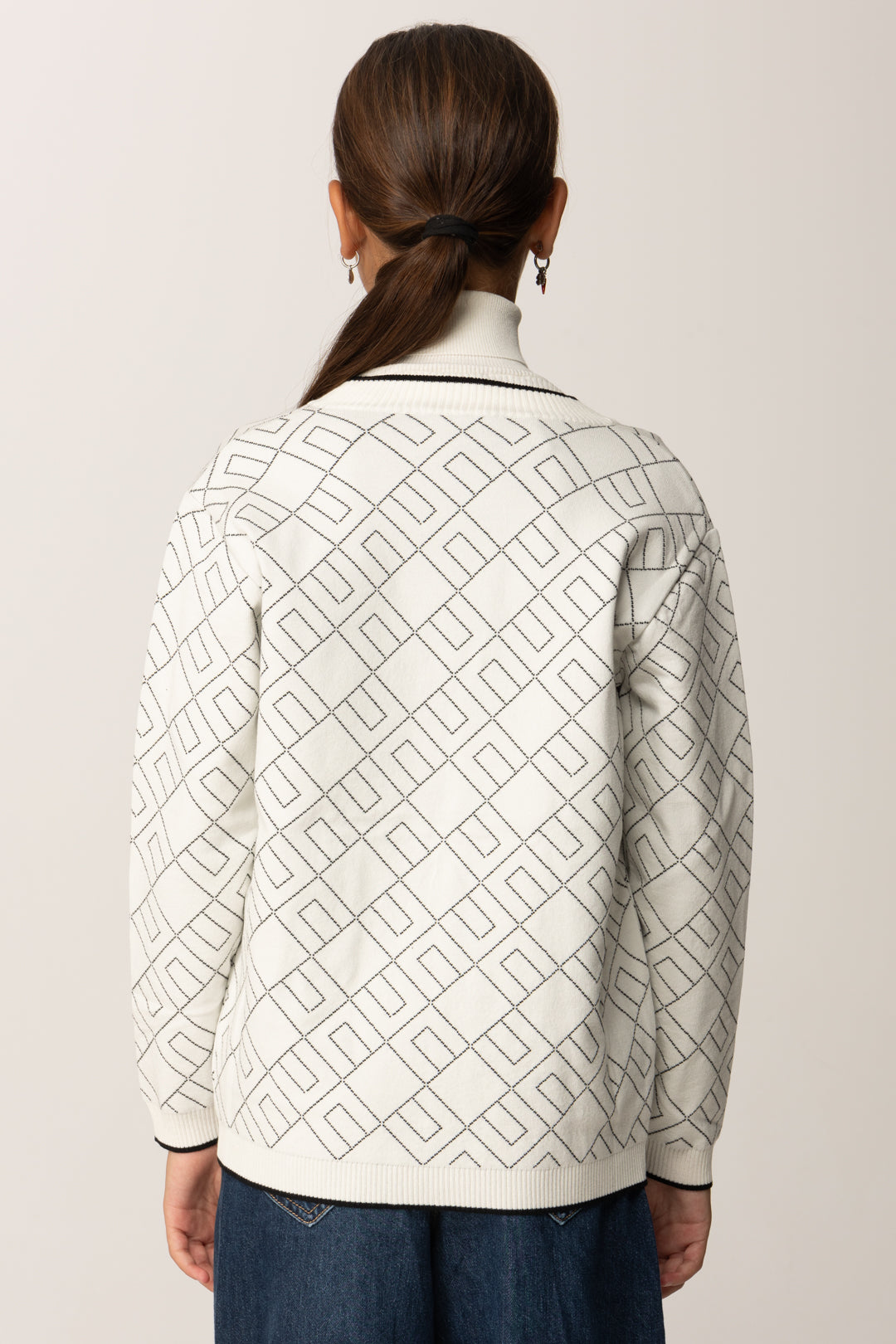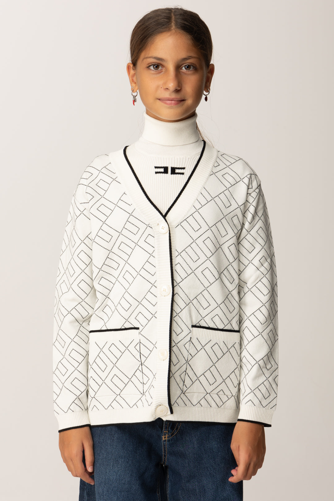 O graficznym i wyrafinowanym uroku, ten cardigan Elisabetta Franchi La mia Bambina wykonany jest z miękkiego trikotazu z dzianiną jacquard na całej powierzchni z motywem logo. Projekt uzupełnia oversize'owa linia z lekko opuszczonymi ramionami, guziki z przodu i naszywane kieszenie z kontrastowym białym obszyciem. To wyrafinowany, ale praktyczny element garderoby, idealny, by dodać preppy charakteru nawet najprostszym stylizacjom.