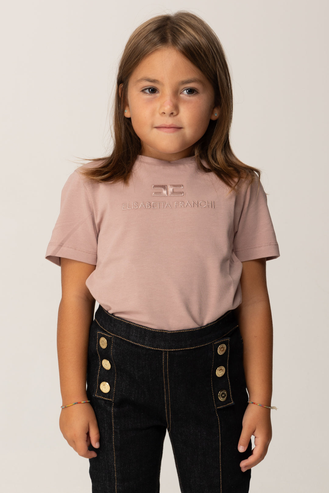 Element uniwersalny, o minimalistycznym, ale wyszukanym designie: ta t-shirt Elisabetta Franchi La mia Bambina jest idealna, aby dodać dyskretnej elegancji do garderoby Twojej małej dziewczynki. Wykonana z miękkiego materiału, posiada haftowane logo marki w formacie instytucjonalnym, wraz z literami, ton w ton. Regularny krój z krótkimi rękawami sprawia, że jest wygodna do noszenia, doskonale dopasowując się do każdej okazji.