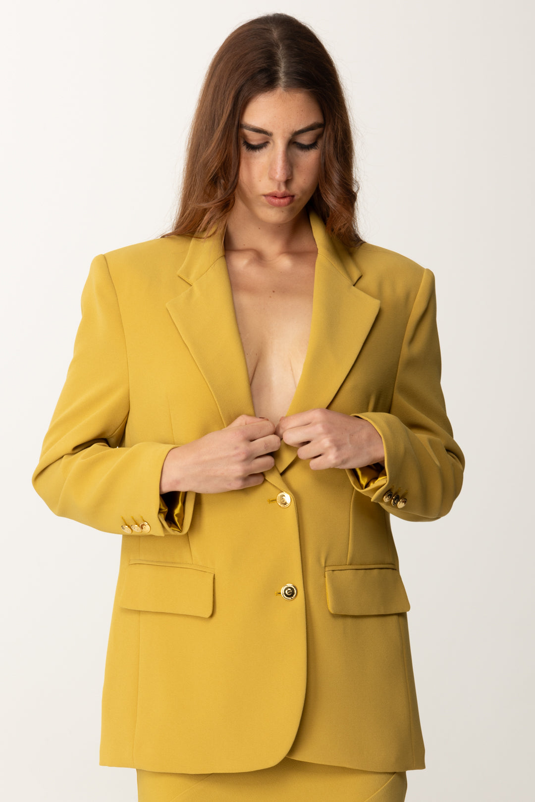 Must-have w garderobie, ta Marynarka Elisabetta Franchi o luźnym kroju nadaje ponadczasową elegancję, idealna do zestawienia z cygaretkami na nienaganny look biurowy lub na mini sukienkę dla chic kontrastu.