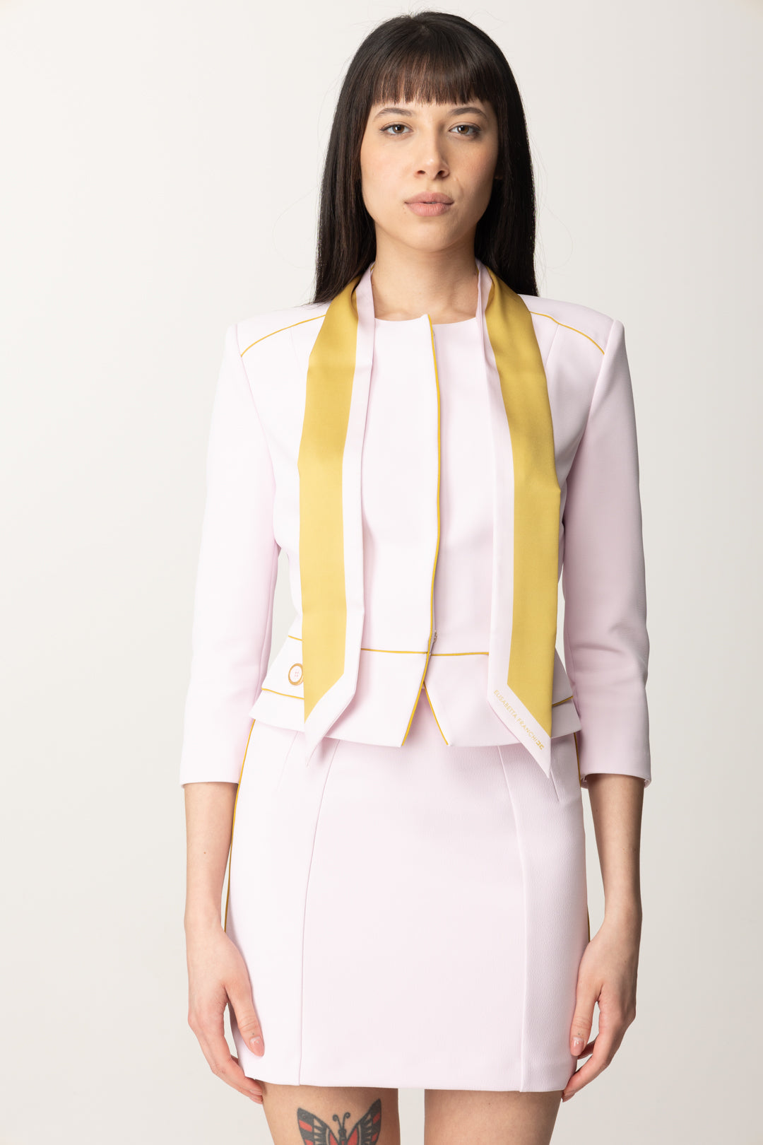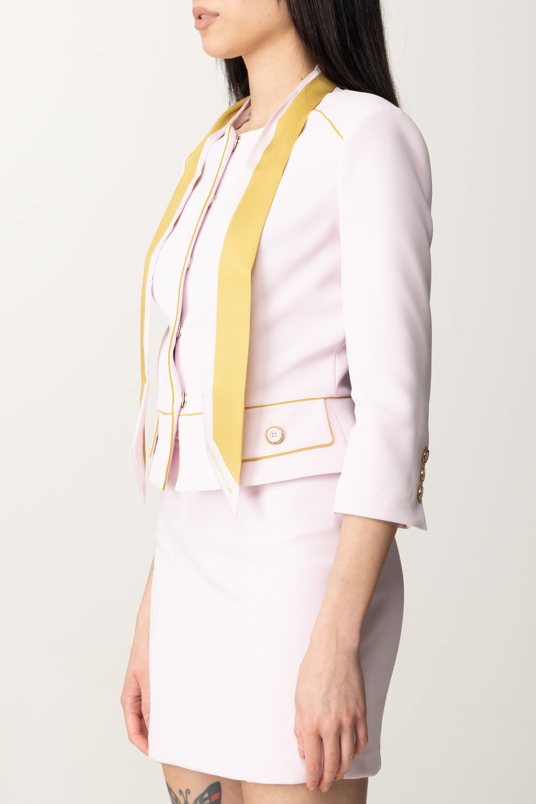 Ta Marynarka Elisabetta Franchi o klasycznym kroju zachwyca kontrastowymi detalami, które nadają jej zabawny i modny charakter, wzbogacona dekoracyjnym paskiem, który dodaje elegancji. Idealna do zestawienia z eleganckimi spodniami lub gonna ołówkową na formalne okazje.