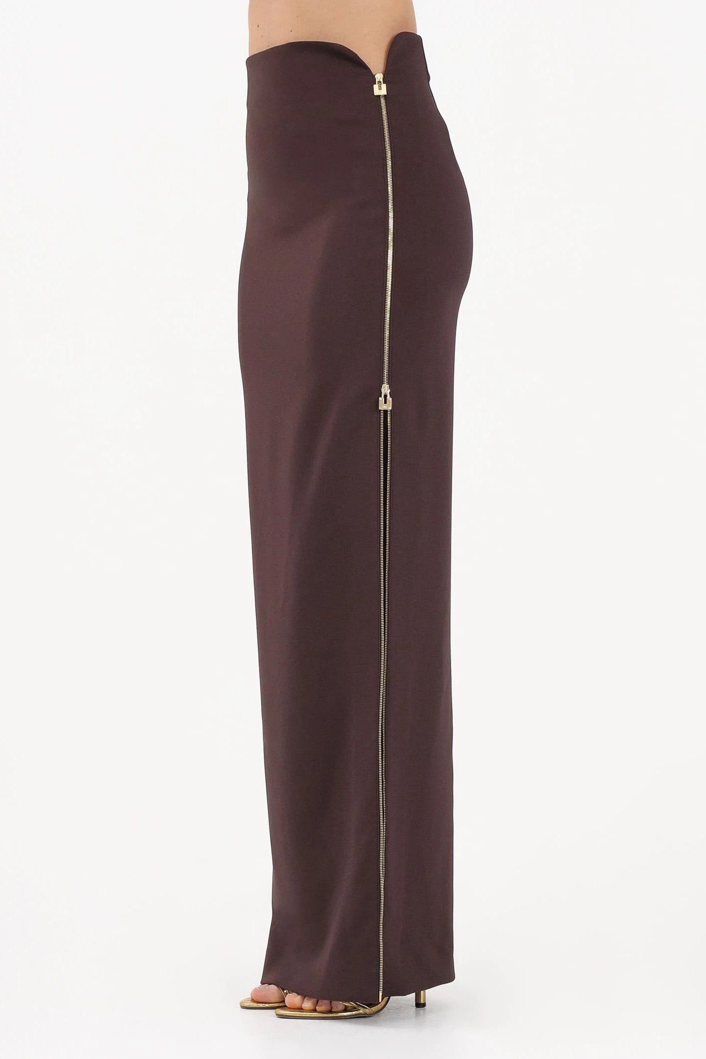 Contemporanea nell'essenza, elegant nell'anima, questa gonna Elisabetta Franchi dal taglio luno sarà compagna di syling incredibili. Realizzata in crepe leggero, il punto focale del design è la vita con il bordo sagomato a cuore, dettaglio che valorizza la waistline con delicatezza e carattere, insieme alla zip laterale che percorre tutto il profilo del capo aggiungendo una nota di modernità, con tiazip logato a firma del brand.