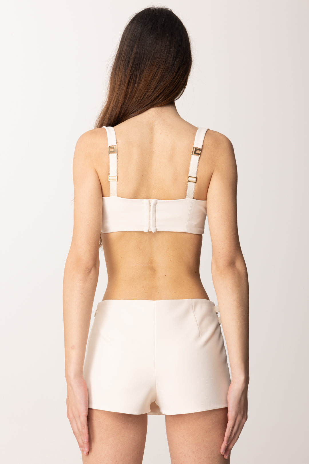 Minimalistyczny i elegancki, ale także bardzo seksowny: wiele odcieni dla tego mikro topu Elisabetta Franchi, z konstrukcją biustonosza, która podtrzymuje biust i ozdabia go delikatnymi falbankami miseczek. Idealny z wysokim stanem, warto spróbować również jako podkoszulek.