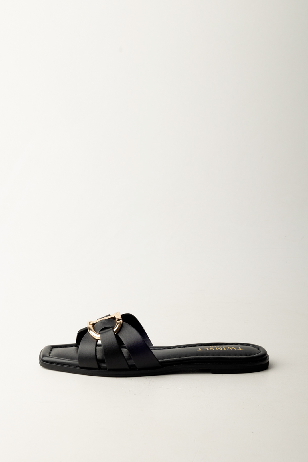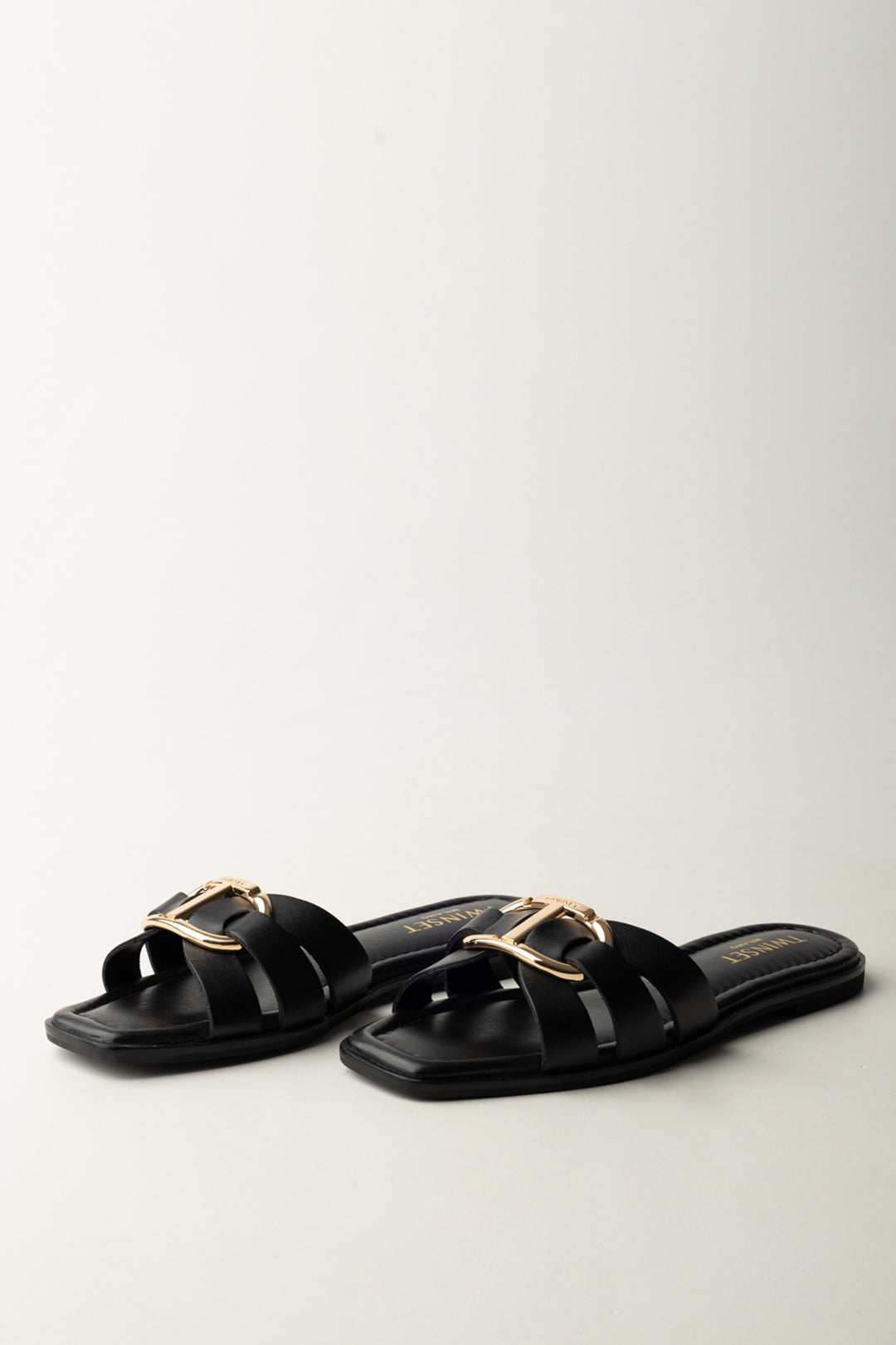 Sandały Twinset niezwykle praktyczne i wygodne, ale z szykownym designem podkreślonym złotym logo Oval T, które nadaje im stylu. Do noszenia z łatwością z codziennymi lub casualowymi stylizacjami, łącząc je z torebką marki dla idealnego total looku.