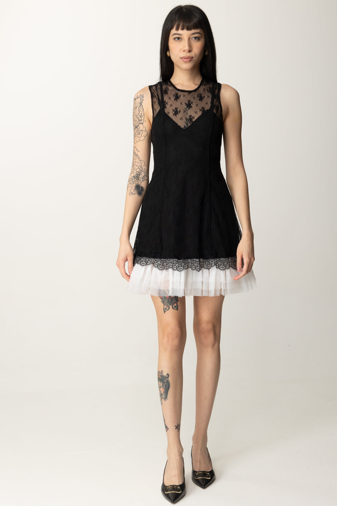 Sensualità, brio e spregiudicatezza in pieno stile del brand per questo mini abito Aniye BY che combina insieme tante ispirazioni, a partire da quella lingerie e del romantico doll dress. La sottoveste si completa con una balza in tulle a contrasto di colore, mentre la canotta in pizzo, rimovibile, aggiunge un tocco di sansuelità e ricercatezza al look. Super sexy con dei tachci, glamour e grintoso con stivali: a te la scelta!