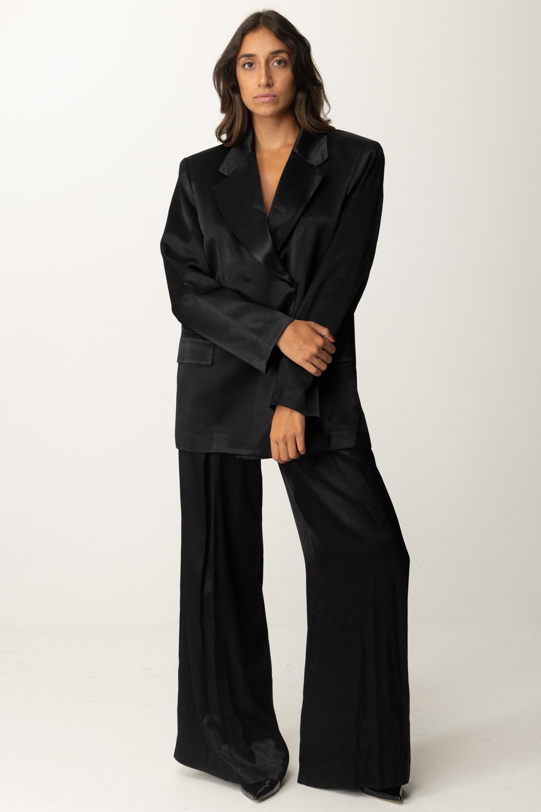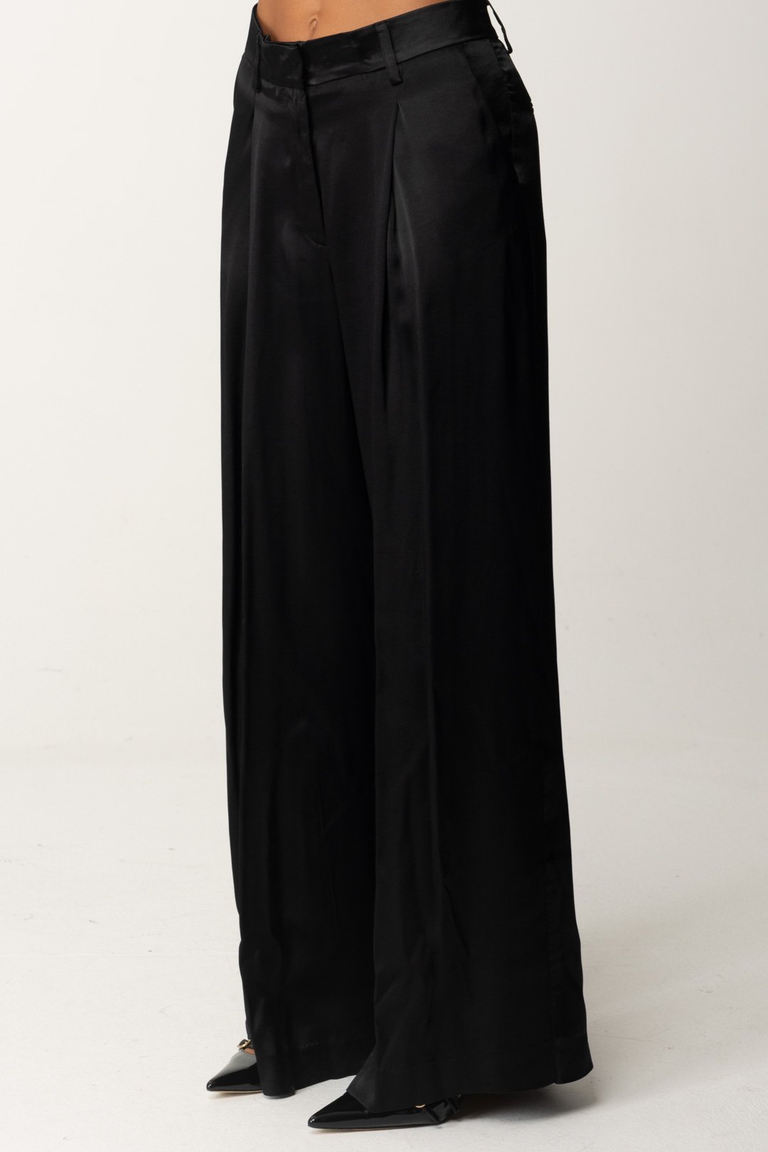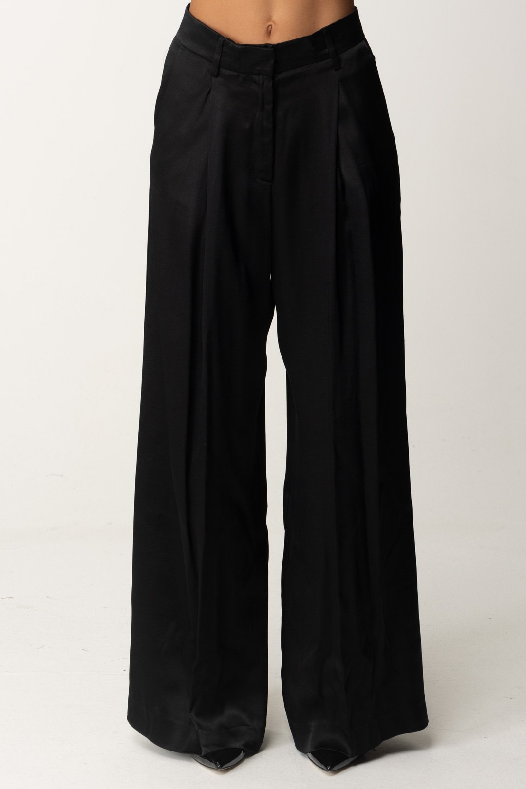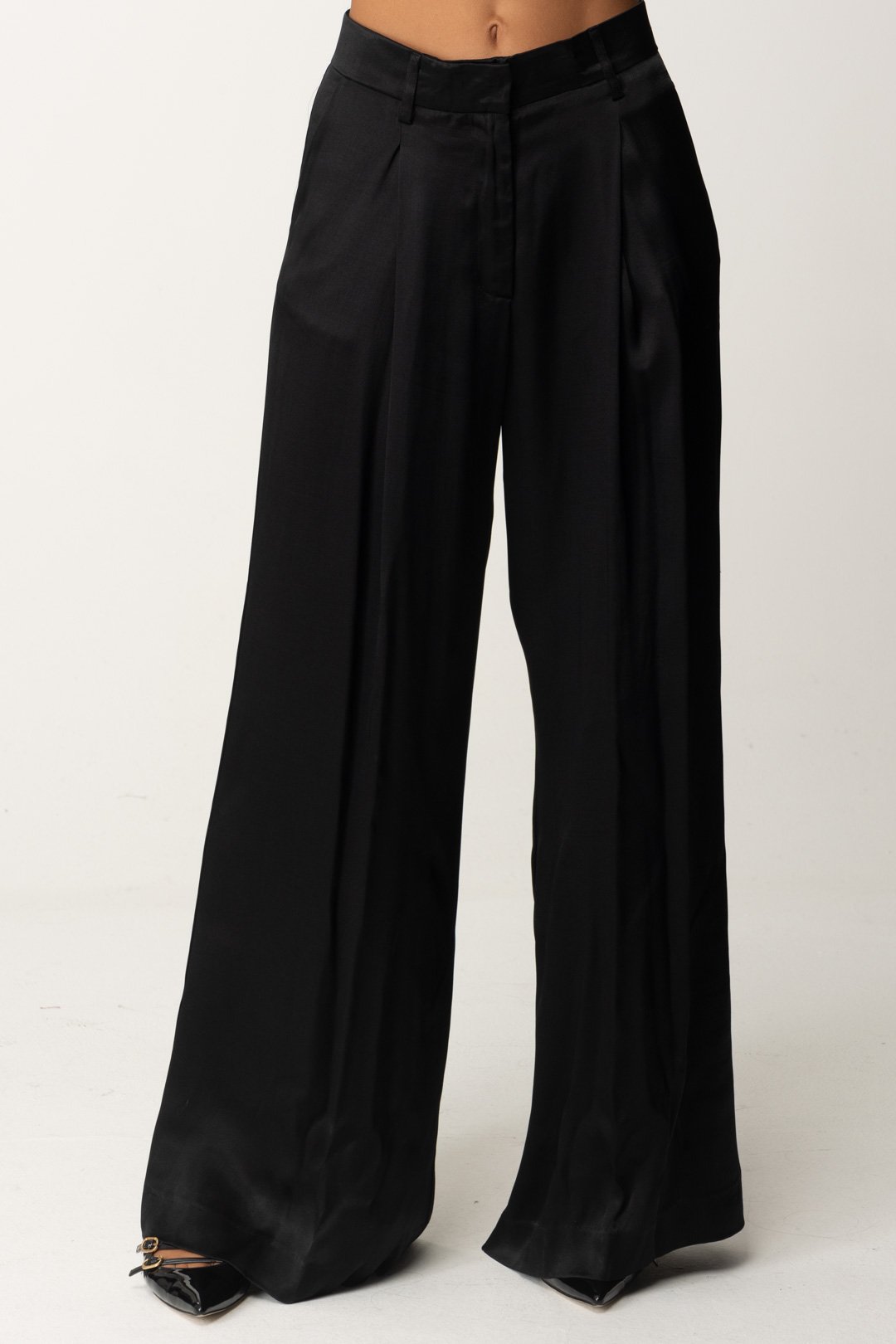 Raso fermo per questi pantaloni palazzo Aniye By caratterizzato da pinces frontali e vita alta con passanti per cintura. Il contrasto tra il tessuto elegante e le linee morbide e rilassate di questo capo lascia campo libero al tuo estro per gli abbinamenti, con una forbice che va dal glam all'elegante. Quello che ti suggeriamo noi? Sicuramente la giacca con lo stesso tessuto!