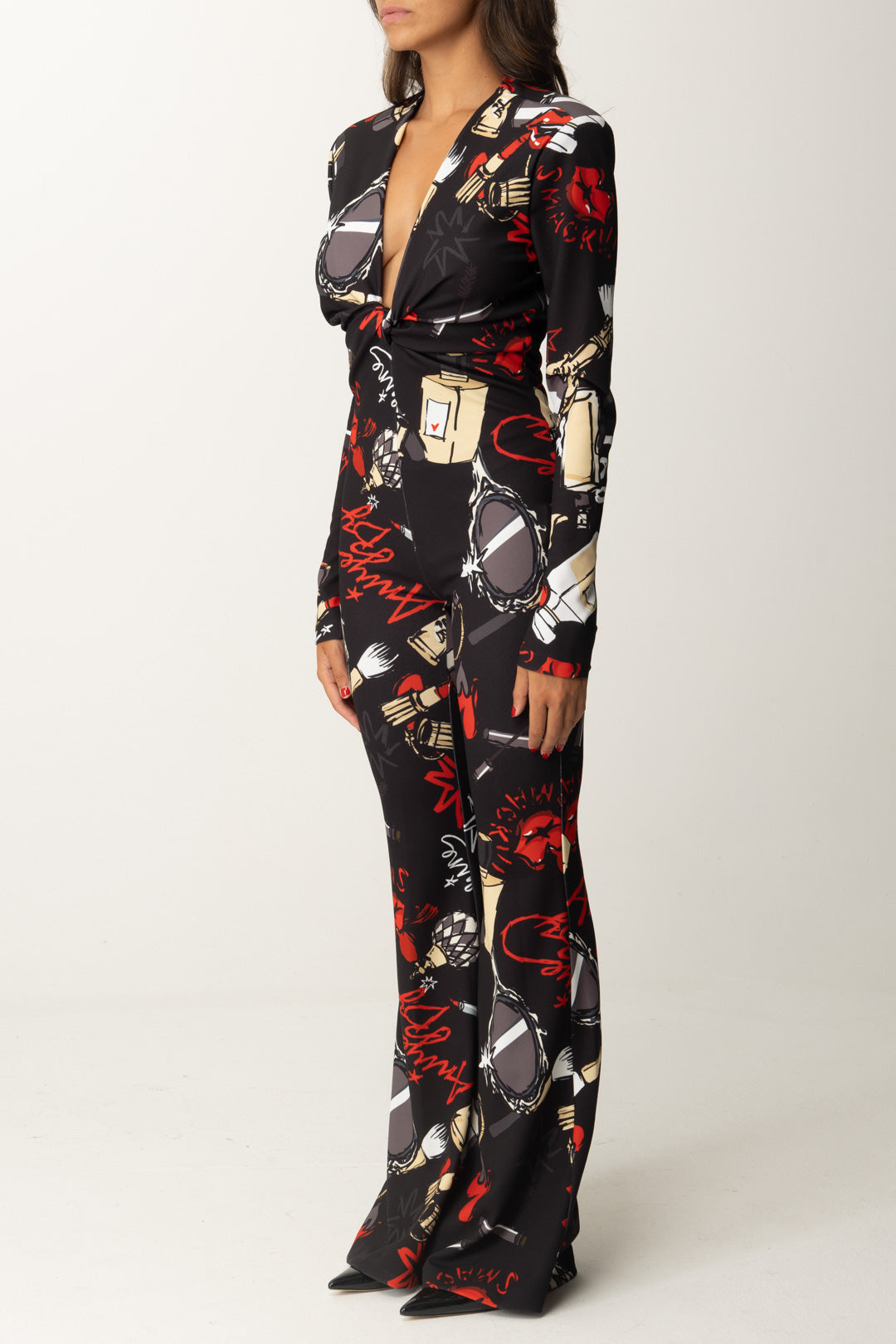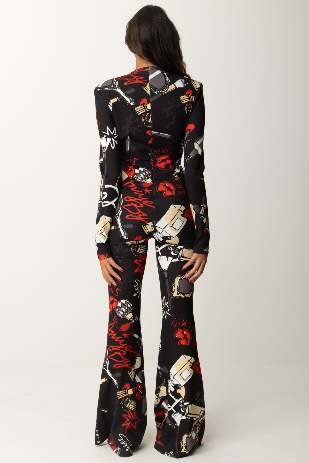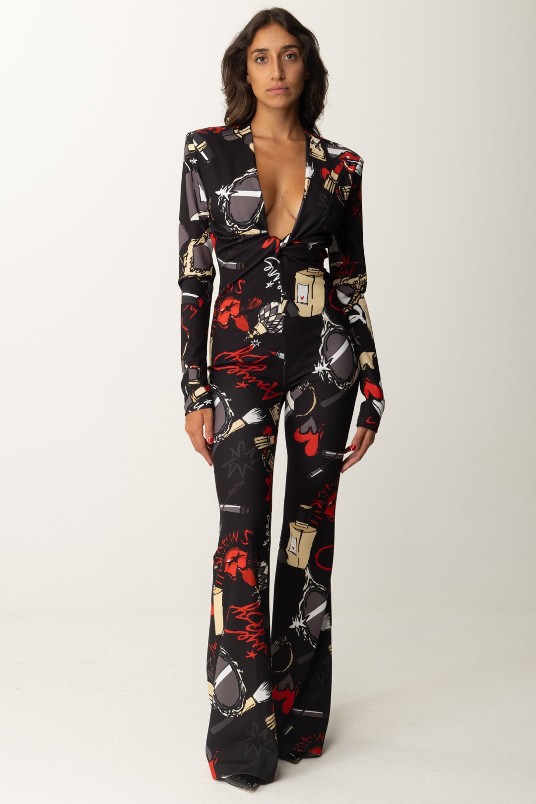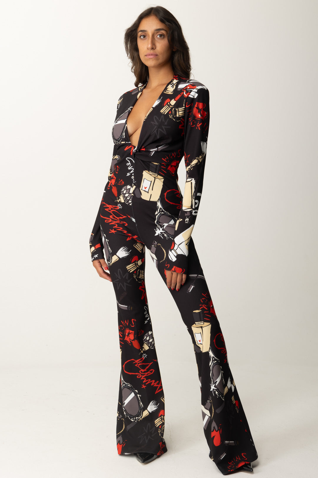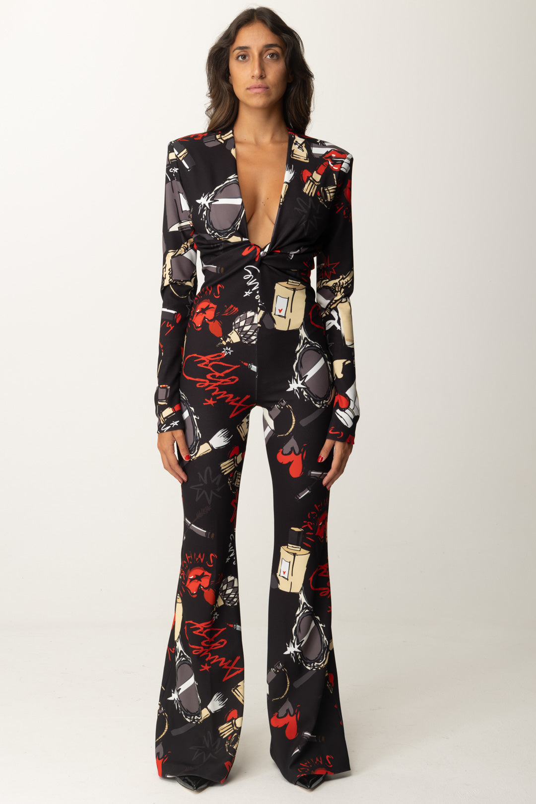 Cosa rende questa tuta lunga Aniye By così interessante? Dai un'occhiata alla stampa: una stilosa rirpoduzione di tutto il necessaire di bellezza, completato da labbra rosse e scritte che sono un'invito all'amore... per te stessa, prima di tutto! Fit aderente, perfettamente equilibrato dalle spalline strutturate contrapposte al pantalone a zampa, la profonda scollatura è completata da un nodo che crea un'arricciatura frontale aggiungendo elementi al tuo look. It's party time, just show it!