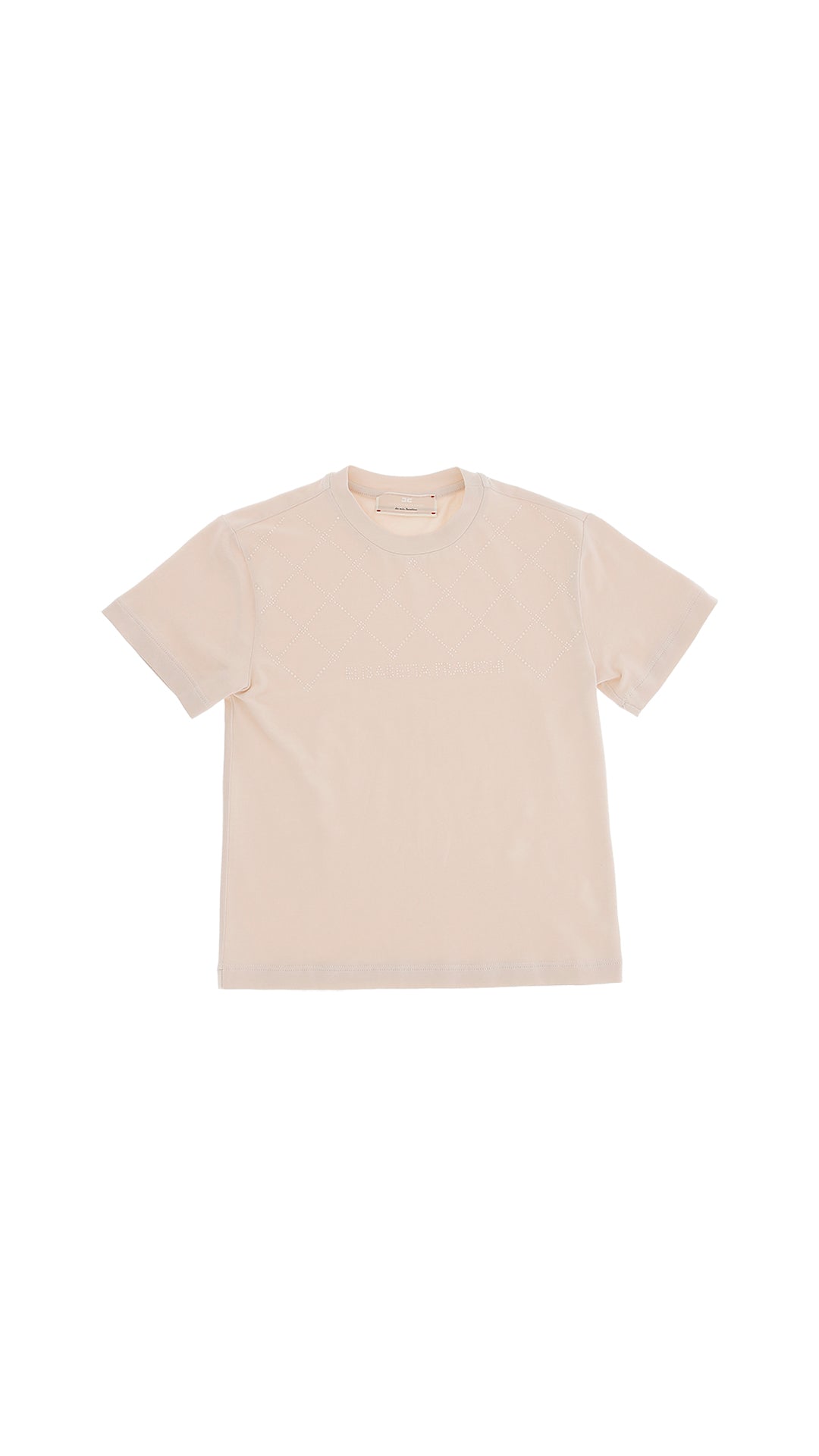 Questa deliziosa T-shirt Elisabetta Franchi La Mia Bambina è un perfetto mix di semplicità e raffinatezza. Il suo taglio regolare e il dettaglio luminoso del motivo losanghe in strass e logo aggiungono un tocco elegante e moderno. Ideale per le giornate casual, è un must-have nel guardaroba delle più piccole.