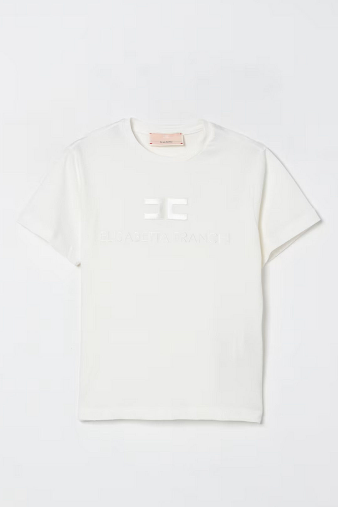 Dal design minimal ma ricercato, questa t-shirt Elisabetta Franchi La mia Bambina è perfetta per aggiungere un tocco di eleganza discreta al guardaroba della tua piccola. Presenta una scritta ricamata "Elisabetta Franchi" sotto il classico logo del brand, tono su tono, per un look brandizzato senza eccessi. Il taglio regolare con maniche corte la rende comoda da indossare, adattandosi perfettamente a ogni occasione.