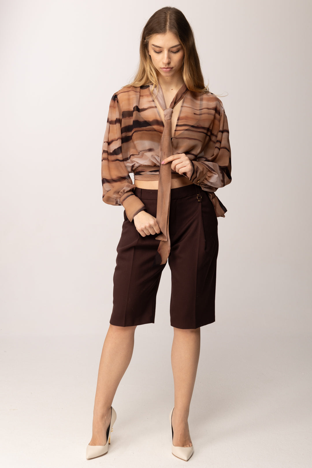 Questo modello è perfetto per creare outfit sofisticati dal carattere contemporaneo. Può essere abbinato a camicie leggere, top aderenti o blazer coordinati per look da giorno eleganti, ma funziona altrettanto bene con maglieria morbida o bluse fluide per uno stile più rilassato ma sempre raffinato.