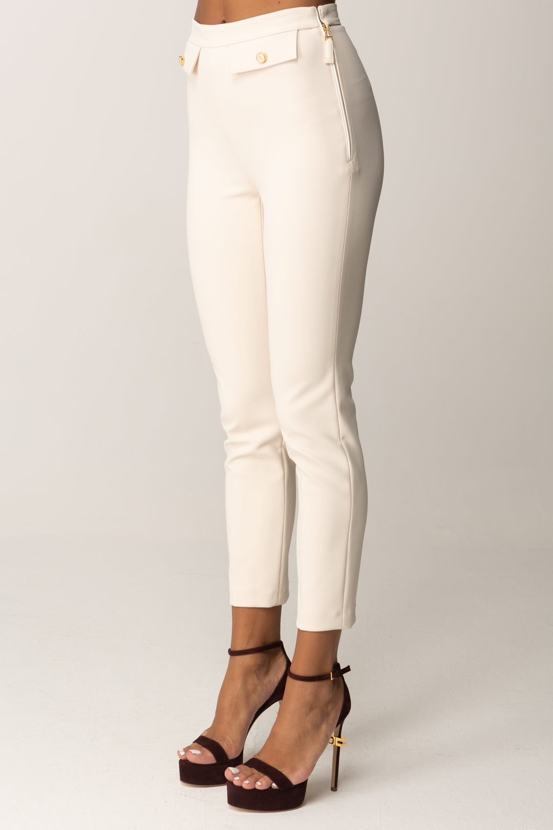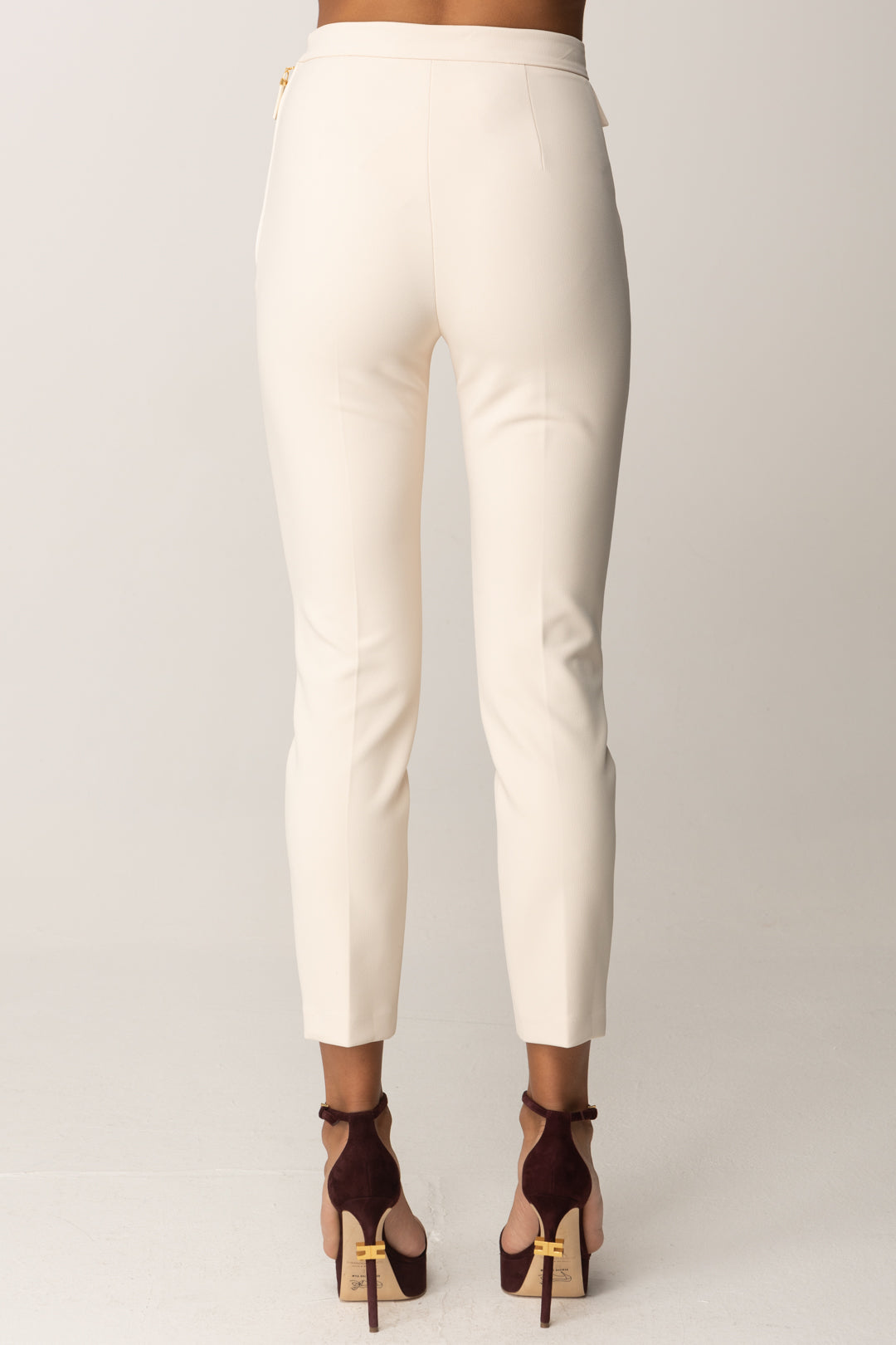 Ancora una proposta super chic per il tuo guardaroba di stagione. Questi pantaloni Elisabetta Franchi in doppio crêpe offrono una silhouette slanciata e moderna: la vestibilità slim e la lunghezza alla caviglia creano un look pulito e contemporaneo. L’applicazione di patte frontali, impreziosite da bottoni smaltati con logo, aggiunge un dettaglio femminile e distintivo, oltre che evidenzaire il punto vita. La chiusura con zip laterale e pull-tab garantisce comfort e cura sartoriale, mentre il tessuto fluido accompagna ogni movimento con sofisticata eleganza.