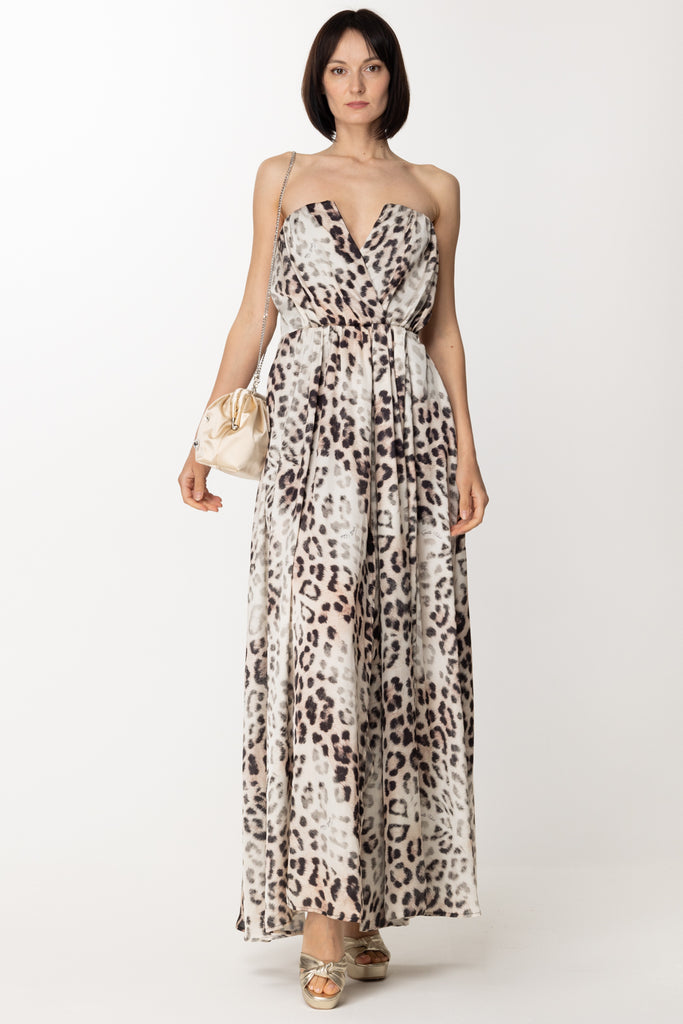 Abito In Raso Animalier con SpaccoMACULATO BEIGE