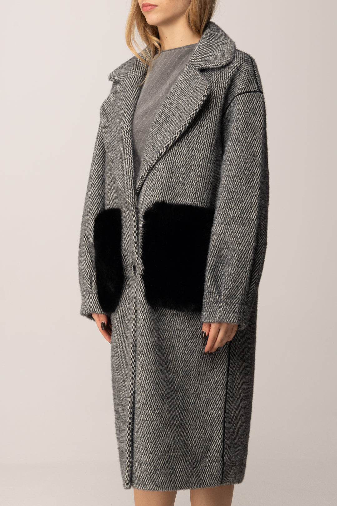 • Lato 1: tessuto spinato con maxi tasche in pelliccia sintetica