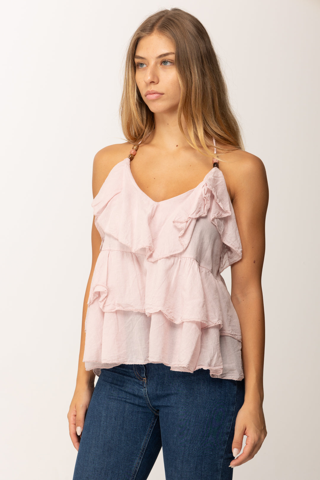 Tipicamente estivo, un top che fa pensare a giornate libere e tempo di vacanza, da indossare con spensieratezza su denim, shorts e pantaloni comodi per godersi passeggiate al sole e aperitivi in riva al mare. Femminile e sfizioso, un capo semplice ma che fa semrep il suo effetto una volta indossato, donando volume anche alle fisicità più skinny e armonizzando le più curvy!