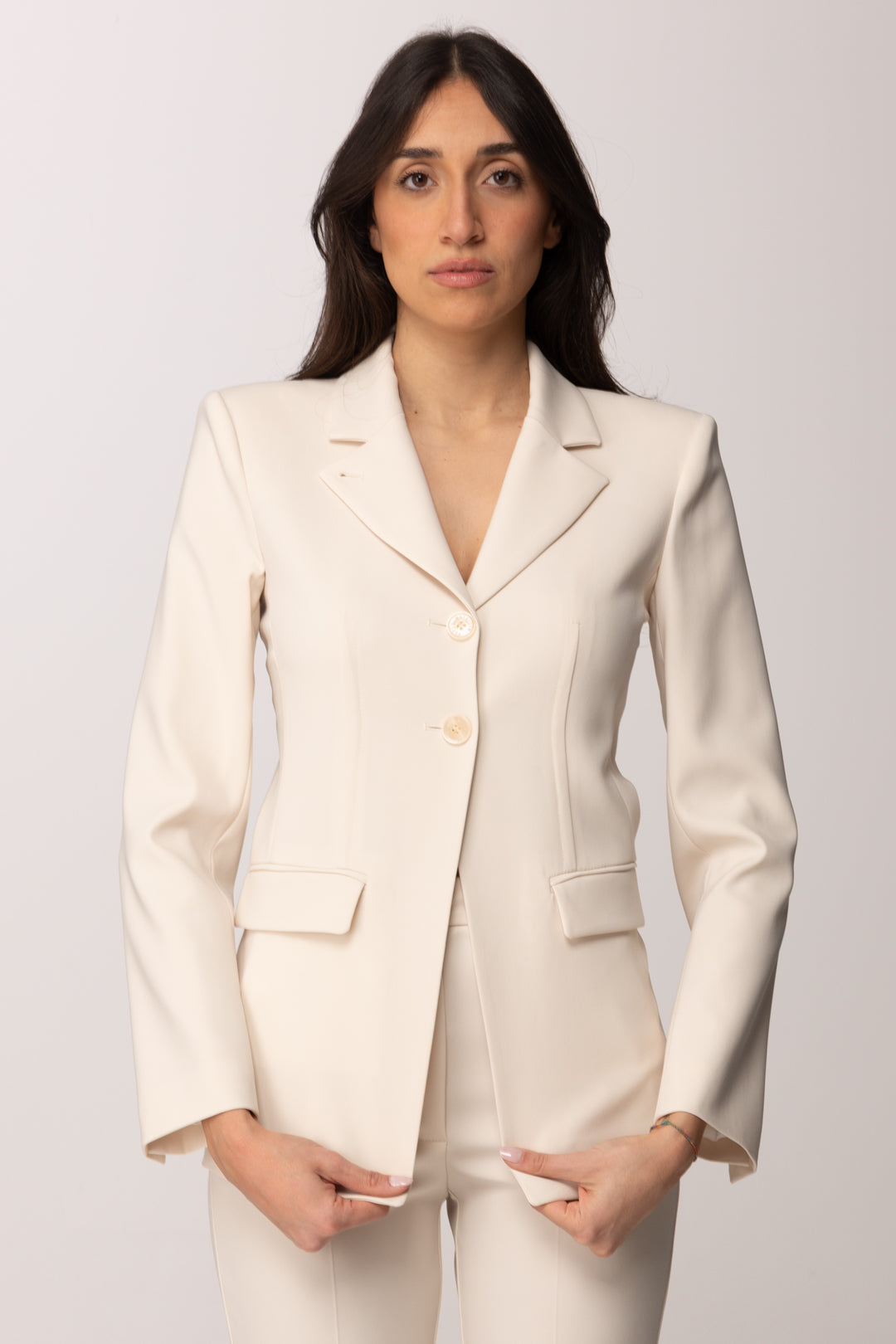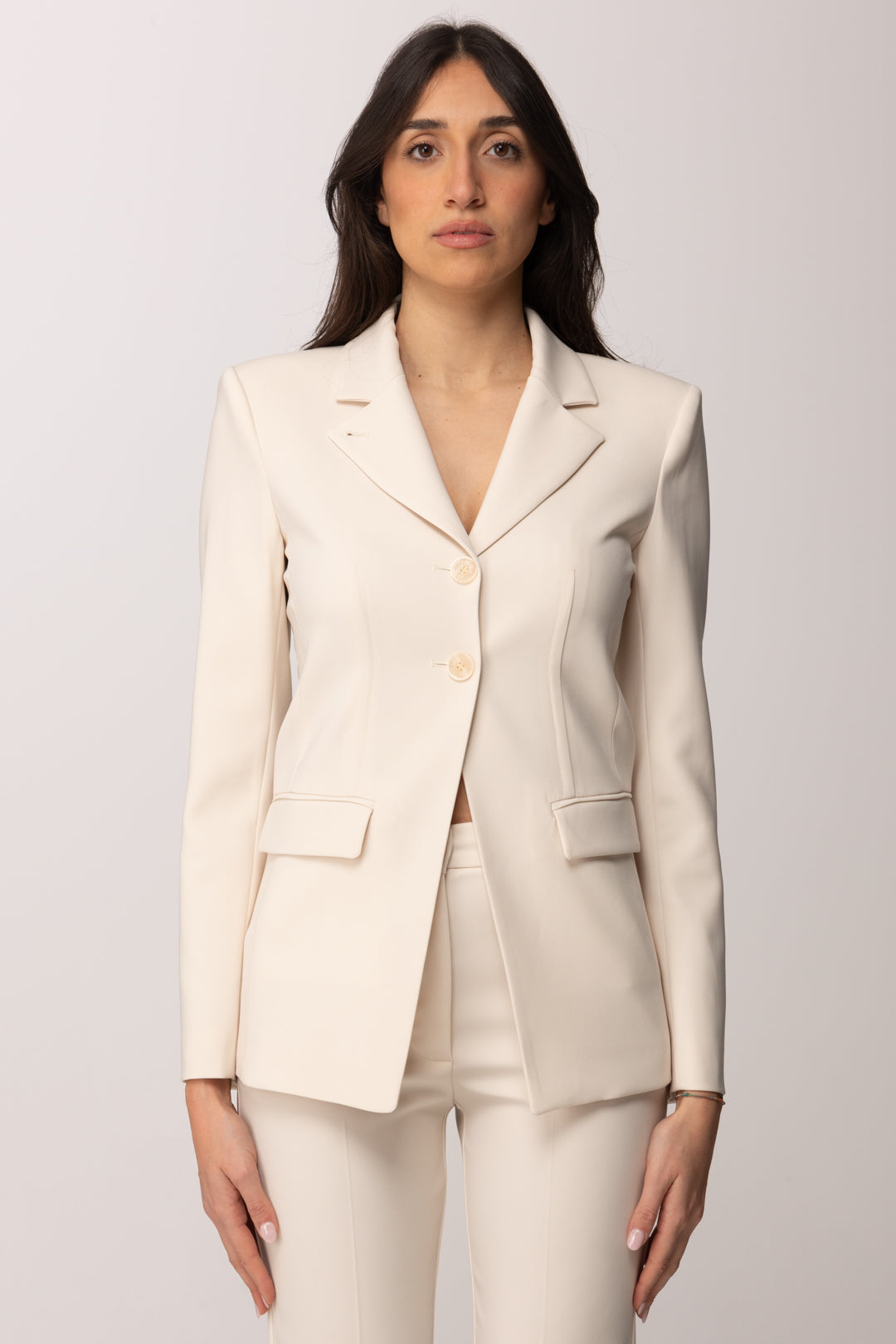 Blazer Patrizia Pepe dal design sartoriale e femminile, pensato per offrire un capo sofisticato e contemporaneo da indossare ogni volta che desideri un’allure curata e raffinata. La linea slim enfatizza la silhouette con precisione, modellando il corpo in modo elegante senza rinunciare al comfort. Il tessuto tecnico di alta qualità conferisce struttura e leggerezza allo stesso tempo, permettendo al blazer di accompagnare i tuoi look con naturalezza e stile. La costruzione sartoriale è caratterizzata da linee pulite e proporzioni studiate nei minimi dettagli: rever classico, spalle leggermente strutturate e chiusura monopetto definiscono un’estetica essenziale ma ricercata.