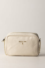 La camera bag Patrizia Pepe è l'accessorio ideale per custodire tutto il tuo necessaire durante il tempo libero. Realizzata in pelle di vitello con finitura metallizzata super lucente, è dotata di una pratica tracollina in catena per portarla comodamente a spalla o cross body.