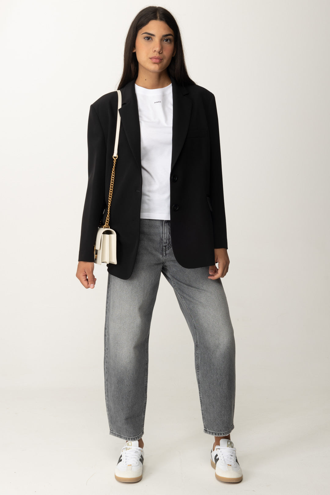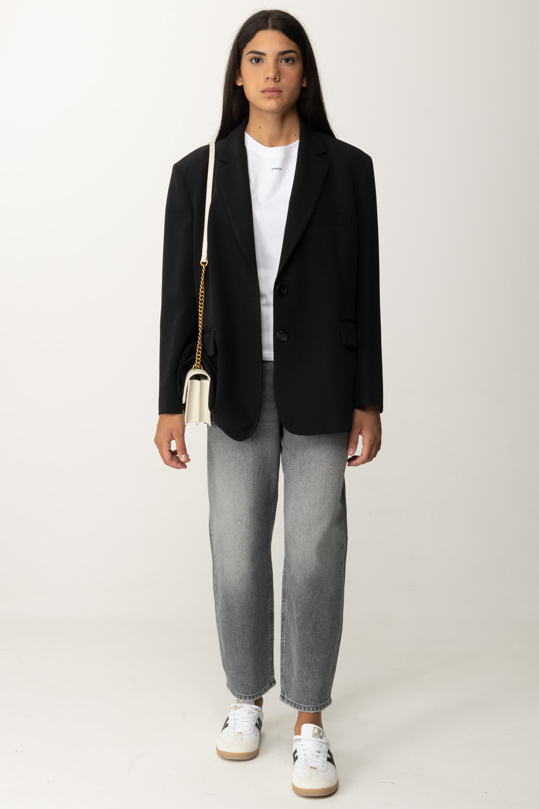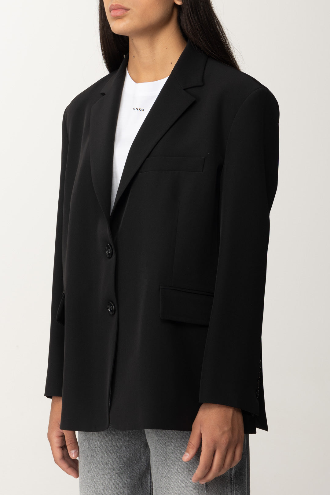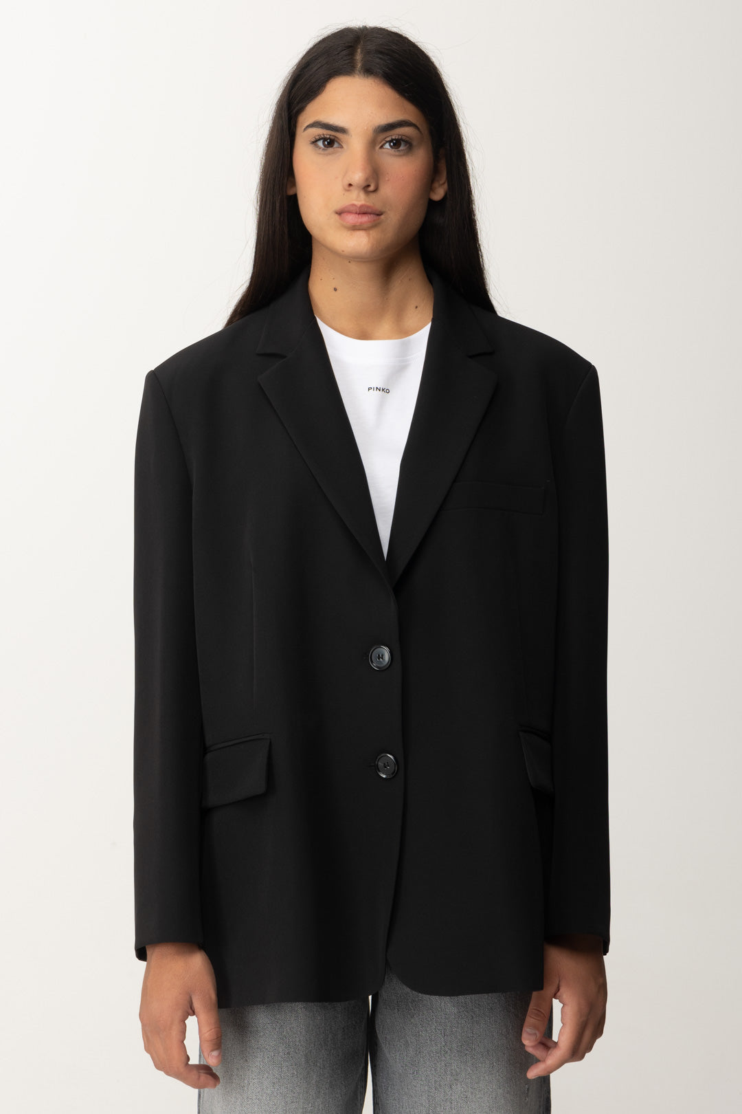 Questo blazer Pinko monopetto è un classico del guardaroba. Collo con revers, maniche lunghe con bottoni sul fondo, due tasche frontali con patta e un taschino sul petto, chiusura frontale con due bottoni e doppio spacco sul retro. Perfetto con pantaloni sartoriali e mocassini per un look da ufficio impeccabile, oppure con jeans skinny e tacchi per un outfit smart-casual.